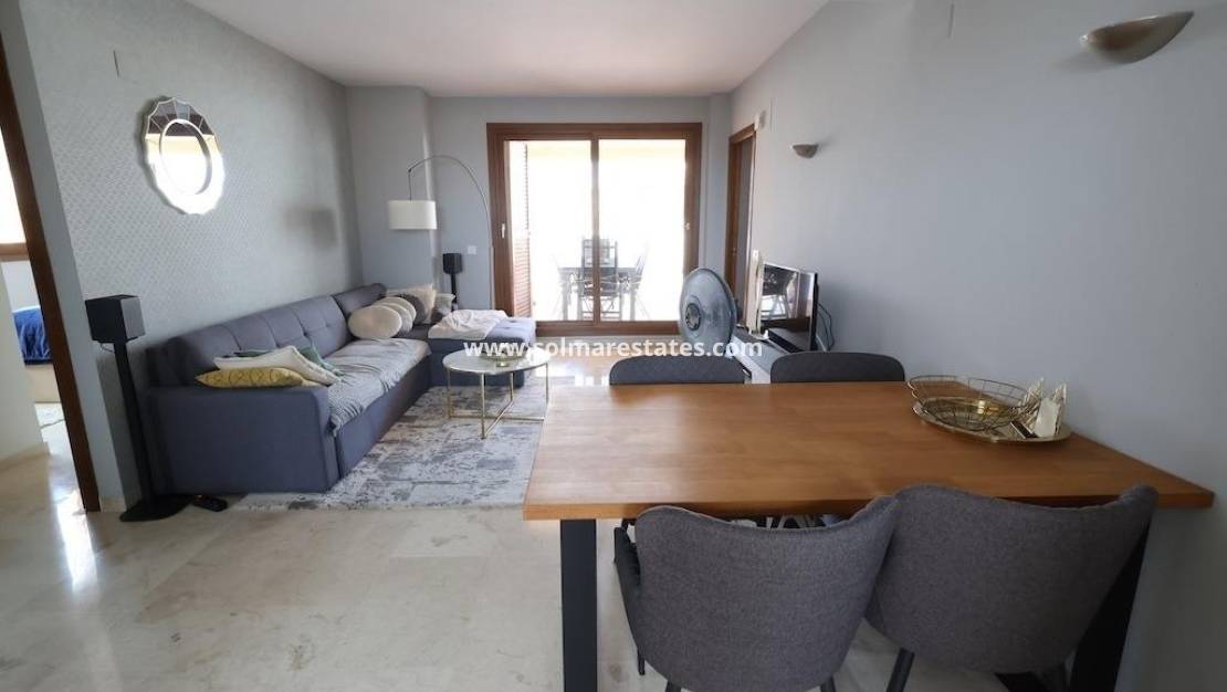 Penthouse in the La Entrada residential complex in Punta Prima. The property has a total area of 70m² and consists of 2 bedrooms, 1 bathroom, and a spacious living room with an open-plan kitchen.