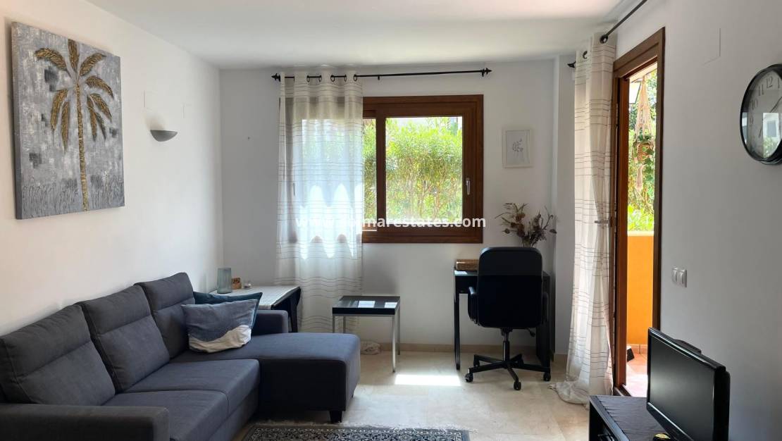 This two-bedroom ground-floor apartment in the prestigious Parque Recoleta complex in Punta Prima is fully furnished and equipped with appliances, ready for immediate move-in.