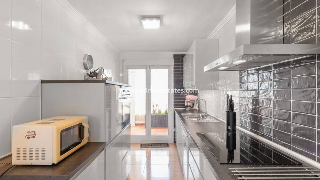 The interior is bright and elegantly finished, with a tasteful living room and a fully equipped modern kitchen that flow naturally onto a generous veranda and large private terrace—perfect for relaxing and enjoying the Mediterranean climate.