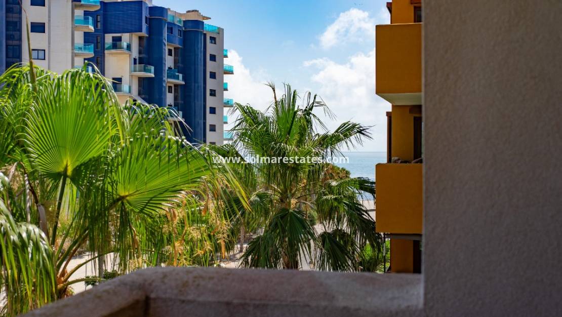 This comfortable 2-bedroom, 1-bathroom apartment is located in the gated community of Parque Recoleta in Punta Prima, just steps from the Mediterranean Sea. The property features a cozy open kitchen and a lounge-dining area leading onto a terrace with sea and communal area views.
