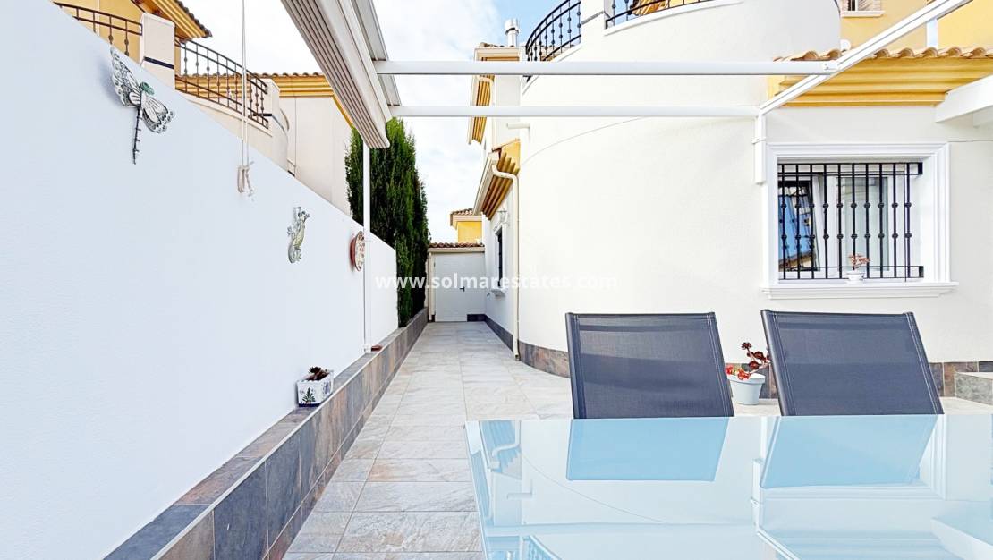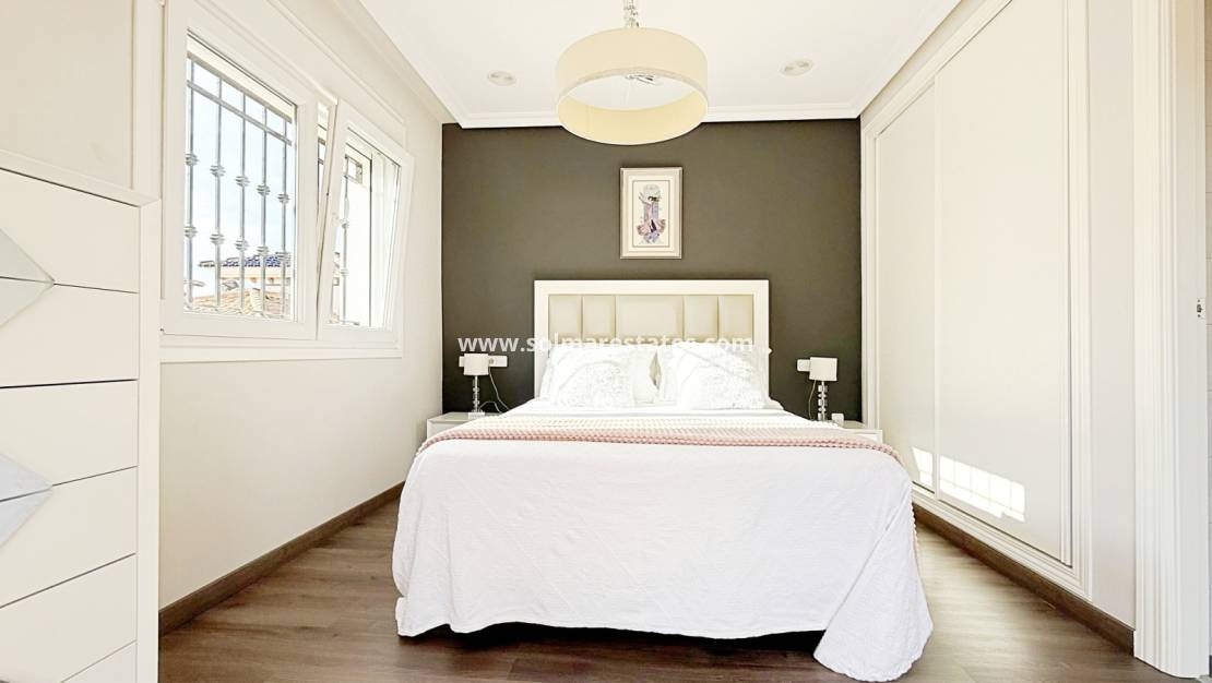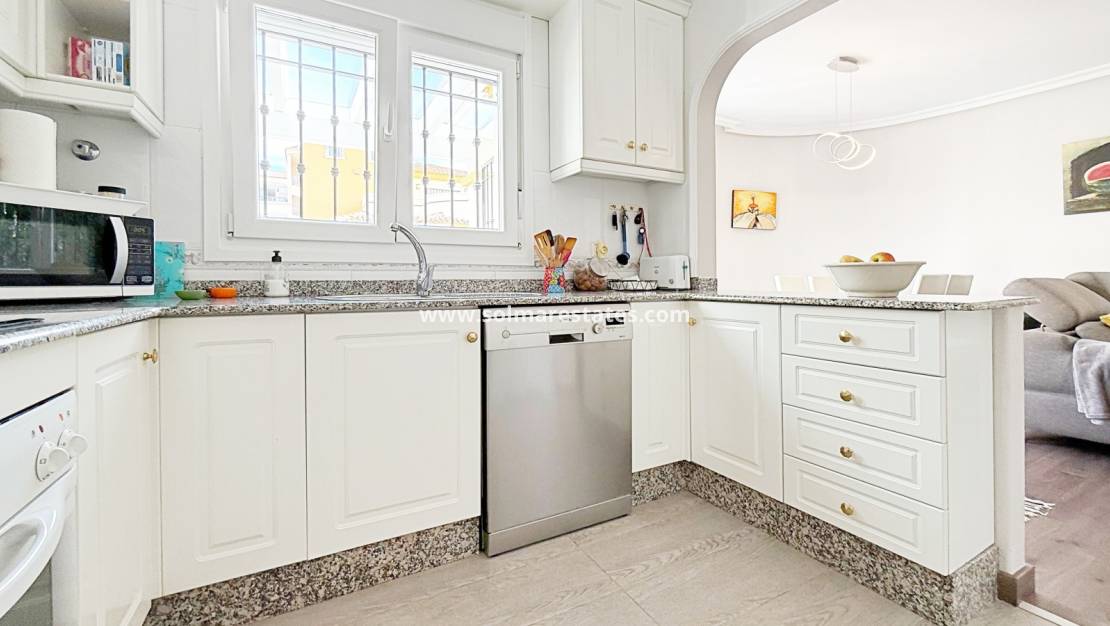 This magnificent detached villa of 105 m² has been completely renovated and is distributed over two floors. Situated in a private residential complex with landscaped gardens and a communal swimming pool, it offers both comfort and style just a short distance from the beach.