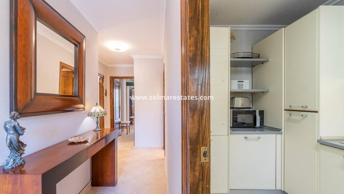 Located on the outskirts of Torrevieja and Orihuela Costa, in the Rocío del Mar residential area, this beautifully renovated first-floor apartment offers three bedrooms and two bathrooms, including an en-suite to the master. The property is part of a gated community with expansive gardens, a communal swimming pool, and elevator access for convenience.