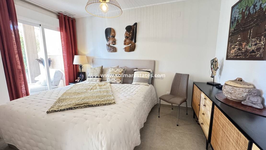 This modern 2-bedroom, 2-bathroom ground floor apartment in the sought-after Vista Azul XXIX complex offers comfort, luxury, and a prime location beside Villamartin Plaza and the renowned 18-hole golf course.
