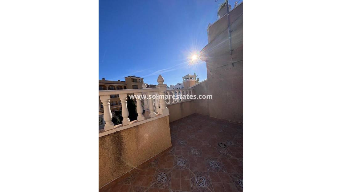 This lovely two-bedroom townhouse is located within a secure gated community in the highly sought-after Villamartin area. The property features a front terrace that enjoys the morning sun, ideal for relaxing with a coffee or breakfast outdoors.
