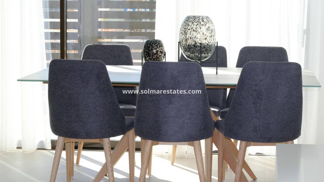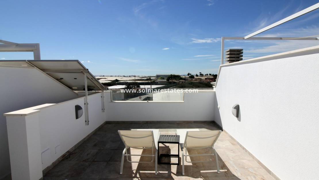 NEW BUILD SEMI-DETACHED TOWNHOUSE IN PILAR DE LA HORADADA New Build modern townhouses built in a quiet part of Pilar de la Horadada with proximity to everything you need. Townhouses has 3 bedrooms, 2 bathrooms, open plan kitchen, living room with direct access to the cozy pool area, terrace at the back with parking space , terrace and large roof solarium. Pilar de la Horadada is a typical Spanish village in the most southern part of the Costa Blanca. The large main street has supermarkets, lots of shops, restaurants and bars and some lovely squares. The beautiful beaches of Torre de la Horadada and Mil Palmeras with fine sand promenade is just 5 minutes away. The airports of Corvera (Murcia) and Alicante are respectively 40 and 55 minutes away.