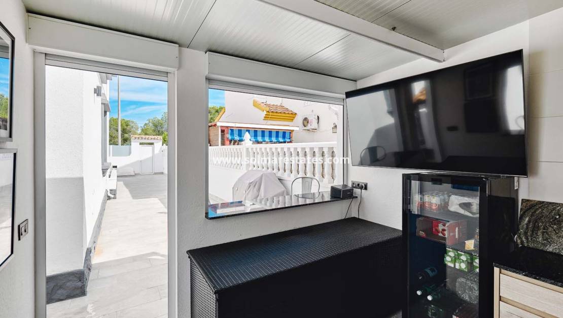Outside, the plot offers everything needed for enjoying the Mediterranean lifestyle: a private swimming pool, off-street parking via an electric gate, a solar shower, and a fantastic fully equipped outdoor kitchen and bar — perfect for entertaining family and friends. The outdoor kitchen has been thoughtfully designed with ample storage, sink, hob, and closing panels to secure it when not in use.