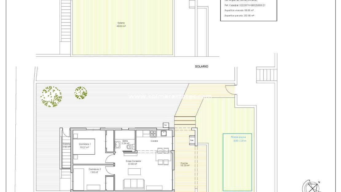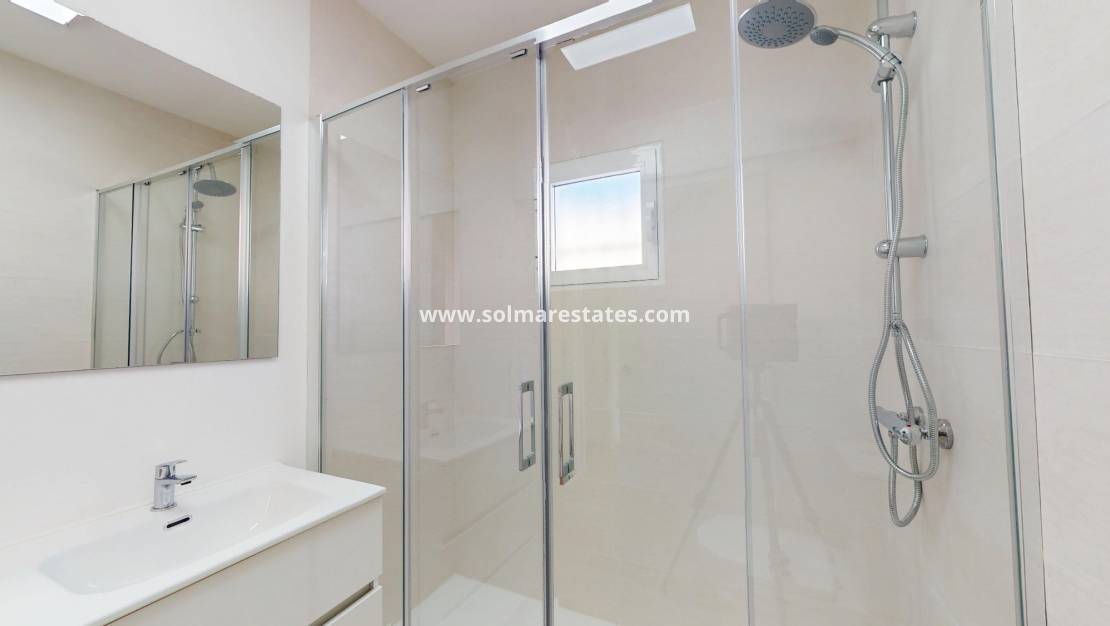 Discover Mediterranean living in this beautifully renovated bungalow located in the peaceful and well-established Blue Lagoon area of Orihuela Costa. Set on a generous 202 m² plot, the property offers 58 m² of interior space, a private 48 m² solarium, and an impressive 147 m² garden—ideal for outdoor living all year round.