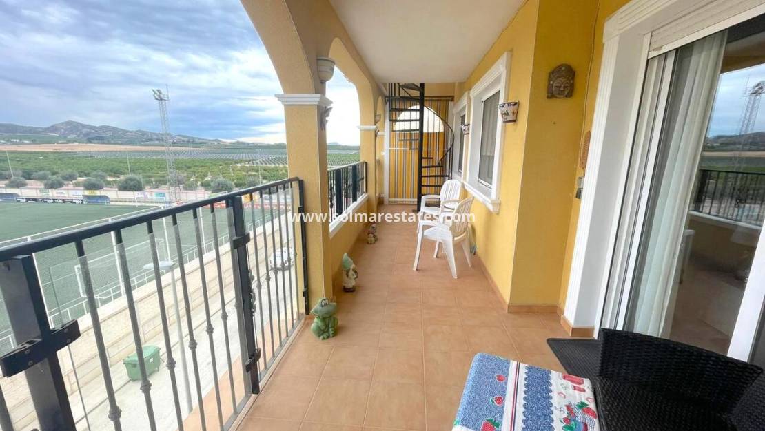 One of the standout highlights is the large private solarium offering panoramic views of the surrounding agricultural landscape, including extensive orange and lemon groves, and a front-line outlook over the sports centre and football pitch. South-facing, the solarium enjoys sunlight throughout the day, ideal for relaxing or entertaining.