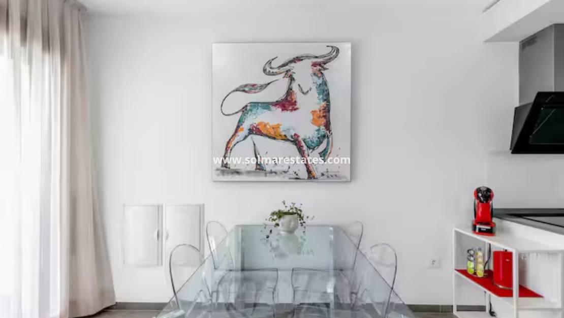 Immaculate 2 Bed, 2 Bath South-Facing Ground Floor Apartment in San Pedro del PinatarDiscover the charm of this immaculate south-facing Apartment, perfectly situated on the ground floor. With 60 m² of modern living space, this stunning property features two spacious bedrooms and two bathrooms, including a convenient en-suite. The open-plan kitchen seamlessly flows into a bright living-dining area, ideal for entertaining or relaxing after a day at the nearby beaches.Enjoy year-round comfort with air conditioning in every room and modern finishes throughout. Step outside to your expansive terrace, where you can soak up the sun while overlooking the inviting pool. This bungalow is practically new and in excellent condition, making it a perfect choice for those seeking a low-maintenance lifestyle.