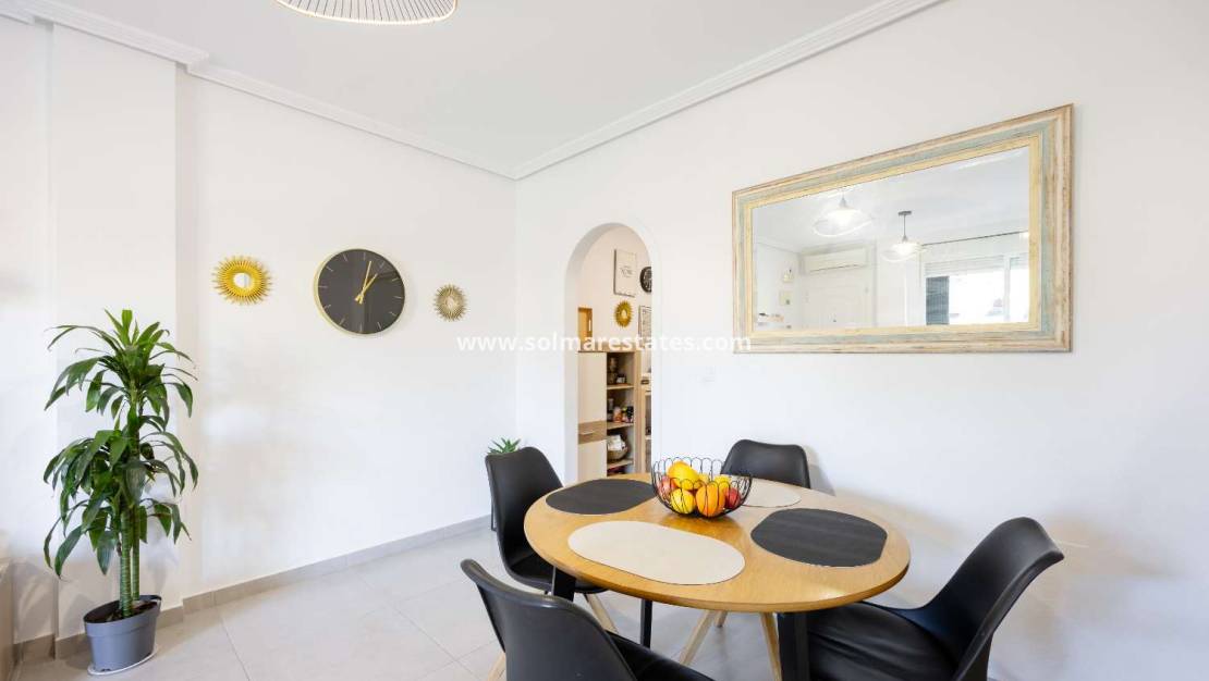 The bright and modern home features two spacious bedrooms, an elegant bathroom, and front and rear terraces, perfect for enjoying the sun throughout the day. The apartment has been tastefully renovated with a contemporary design that combines style and comfort.