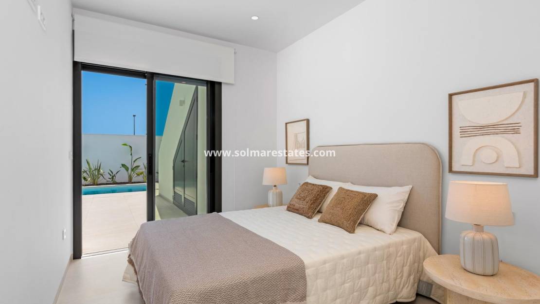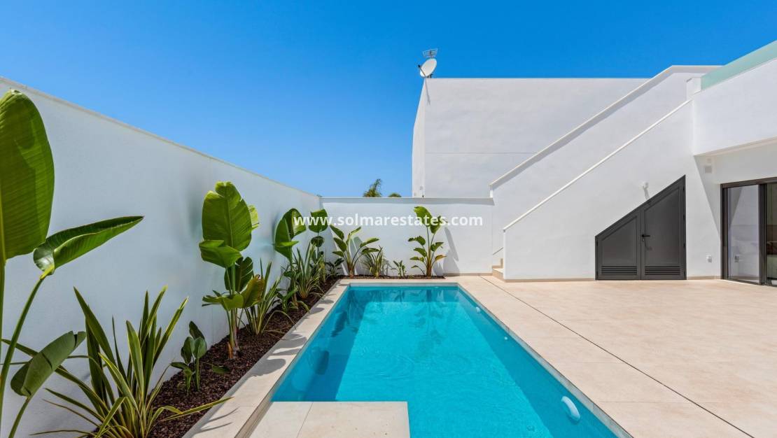 New Build Villas Near Serena Golf in Los Alcazares Modern Villas in a Prime Coastal and Golf Location This exclusive new build residential project offers modern villas located in Los Alcazares, just a short distance from the prestigious Serena Golf and only 1.2 km from the sandy beaches of the Mar Menor. Set in one of the most attractive areas of the Region of Murcia, these homes combine contemporary design, comfort and an excellent location close to the sea, golf and all daily services. Los Alcazares is a well established coastal town known for its relaxed lifestyle, long promenade, water sports and mild climate throughout the year. Single Level Design with Private Outdoor Spaces The development features stylish villas with 3 bedrooms and 2 bathrooms, available in two different built sizes of approximately 106 sqm and 130 sqm. The larger model also includes an additional guest toilet. All villas are designed on a single floor, offering practical and comfortable living. The open plan kitchen, dining and living area connects directly to a terrace and private garden with swimming pool, creating an ideal space for indoor and outdoor living. Each property also includes a private solarium and on plot parking. High Quality Finishes and Modern Equipment These villas are built with high quality materials and equipped with modern features. The fully fitted kitchens are available in white gloss or wood finish and include quartz worktops, stainless steel sink, induction hob with integrated extractor, oven, microwave, washing machine, integrated fridge and dishwasher. Bathrooms are fitted with furniture, mirrors, lighting and electric towel heaters. Additional features include electric blinds in bedrooms, LED lighting throughout the property and a complete ducted air conditioning system by Fujitsu. Private Pool and Energy Efficient Comfort Each villa includes a private swimming pool finished with blue ceramic tiles, integrated steps and white LED lighting. The pool is prepared with pre installation for a heat pump. The combination of efficient climate control, modern construction and thoughtful design ensures comfort all year round. Excellent Connectivity and Key Distances The villas are within walking distance of the town centre of Los Alcazares and very close to Serena Golf. The beach is approximately 1.2 km away. Cartagena city is around 20 km away, offering a rich cultural and gastronomic scene. Murcia Corvera International Airport is about 22 km away, and Alicante Airport is approximately 90 km. Several golf courses and marinas are also nearby, making this location ideal for both permanent living and holidays. Your Ideal Home by the Sea and Golf If you are looking for a modern new build villa near the beach and golf in Los Alcazares, contact us today for more information or to arrange a private viewing.