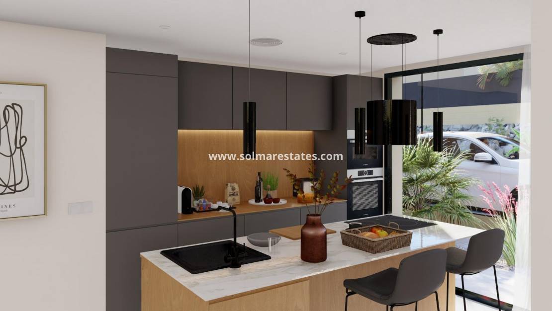 NEW BUILD VILLAS IN ALTAONA GOLF RESORT, MURCIA New development of beautiful villas in Altaona Golf resort, Murcia. Located in a privileged environment where we can live quietly, in contact with nature and the mountains, we get quality of life, fresh air and open spaces. The beautiful 1 level villa has 3 bedrooms, 3 bathrooms, open plan kitchen with living area, private gardens with the pool and parking space. Exclusive new build residential located in Altaona Golf just 15 minutes drive from the centre of Murcia city and 20 minutes from the beaches you can enjoy the tranquillity and security offered by the 18 hole golf course and the convenience of living close to all amenities. Murcia Corvera airport is only 15 minutes away by car.