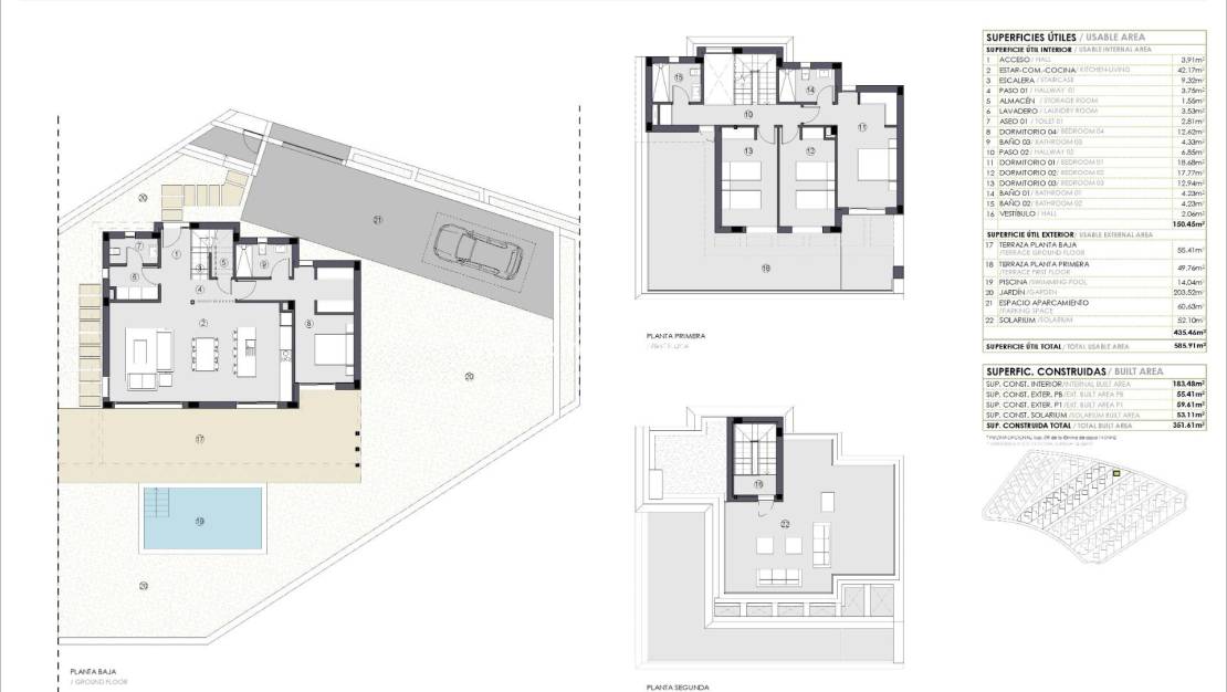NEW BUILD VILLAS IN POLOP New Build development of villas in Polop, offers you a space where you can fully experience the Mediterranean lifestyle. Choose between 2 and 3 bedrooms villas in Polop designed to capture the essence of the Mediterranean and enjoy the environment in outdoor areas. The highlights of this project are its breathtaking panoramic views of two unique locations: the bay of Altea with its deep blue sea and the majestic Alicante mountains with their peaks and vegetation. Let yourself be hypnotized by these incredible views from the terraces of these houses in Polop that also have large spaces that invite you to take advantage of the exceptional climate of the Costa Blanca and that you can customize according to your preferences. Its dimensions are ideal for installing tables, chairs, sun loungers or any outdoor furniture you want. Project is thought and designed to enjoy the outdoors, not only with terraces, but also with gardens, porches and solariums in each house. In addition, most of the houses in Polop offer the option of adding a private swimming pool (infinity or not, depending on the characteristics of the plot). Alternatively, those who opt for a single-storey house can choose to install a jacuzzi on the solarium. The distribution of these villas is designed to provide comfort in your day to day life, with fully equipped open concept kitchens, including hob, induction hob, oven, extractor hood and sink. Bathrooms also come equipped. All units include a parking space in the price. The location is a luxury. You will be located just 5 minutes from the center of "Polop de la Marina", a charming village that combines tradition with a wide range of services: restaurants, stores, supermarkets, banks, hospitals and everything you need for your daily life. To complete a perfect experience, very close to the villas you will find multiple routes for hiking and mountain biking, along with a sports center equipped with paddle tennis courts. In addition, for golf enthusiasts, renowned golf courses such as Villaitana Golf, less than 15 minutes away by car, are just a stone's throw away. And that's not all! A 5-minute drive away one of the largest sports complexes in Spain is currently under construction: "Ciudad del Deporte La Nucia". There you can already find the prestigious Ferrer Tennis Academy and the Camilo Cano Olympic Stadium. This developing complex includes a Soccer Center, the main surfing park in Spain with wave pools, accommodation for athletes and educational centers. And we can't forget the stunning beaches of the Costa Blanca, which stretch along 244 kilometers of coastline, and beautiful Altea, one of the most picturesque villages in the country. In addition, you will find first class golf courses and infrastructures such as the Alicante-Elche Miguel Hernandez Airport, just 50 minutes away by car. 857