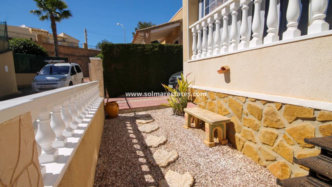 Must be viewed, CAR INCLUDED, Fully Furnished to the highest standard!This well presented, spacious 3 bed, 3 bathroom detached villa set in a gated community in the urbanisation of El Galan, Villamartin.This property consists of a fully developed under build with a newly refurbished bathroom and a large spacious double bedroom, with the ability to convert to adapt to a self contained studio.On the ground floor, there is an open plan kitchen and living room, with a bathroom, utility/ storage room and access to the under build. On the 1st floor there are 2 beautiful large double bedrooms both with doors leading onto a stunning terrace, with views of the pool. A further Juliet balcony on the main bedroom with stunning views all the way to the sea. There is also a spacious family bathroom and access to a self contained storage area. The outdoor spaces consist of a wrap round garden, porch and access to the stunning communal pool with an outdoor shower and plenty of space for sunbathing. There is also a spacious garage with an american fridge freezer, space to park a car which is also INCLUDED in the price.This is a perfect location and property for holidays or a permanent home. Airport: 50 minutesNearest beach: 12 minutes