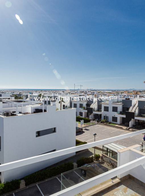 This beautiful penthouse apartment situated in a select gated community of Lo Romero Golf, is offered in excellent condition throughout with stunning views of the countryside and distant sea views. The property is situated just a short 5 minute drive from a variety of shops and local amenities in Pilar de la Horadada and only around 15 minutes drive to the lovely beaches of the Costa Blanca.This lovely property has 2 double bedrooms, a family bathroom as well as ensuite to the master bedroom. Open plan living area leading to a modern fitted kitchen. There is a small storage room, and a very spacious roof solarium, with fabulous 360 views of the surrounding area. There is private parking , and an inviting communal swimming pool and gardens. The property is offered fully furnished and in excellent condition.Contact our team for soonest viewing!