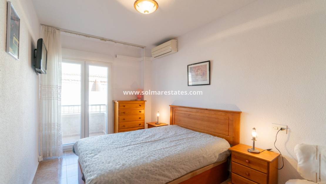 Discover this charming penthouse located in a prime area of Torrevieja, just a three-minute walk from the beautiful Playa del Cura beach.~~With a constructed area of 75 m2, this property offers partial sea views that enhance its appeal.~~It features two double bedrooms, larger than average, ideal for relaxation and family comfort.~~It also has a well-distributed full bathroom and includes a very practical laundry room that adds extra functionality to your everyday space.~~The windows were recently replaced (2022), providing greater energy efficiency and acoustic comfort within the home.~~The building has a communal solarium where you can enjoy the sunny Mediterranean climate year-round without worrying about neighbors above, thanks to its strategic top-floor location.~~One last important detail: it's being sold fully furnished!~~This penthouse is the perfect option for enjoying the Mediterranean climate on the Costa Blanca!~~Price: €149,000. Taxes and closing costs not included (according to applicable regulations). A breakdown of additional costs will be provided before booking.~In the case of a transaction involving two intermediaries, the buyer's professional fees will be 1.5% of the final purchase price, with a minimum of €3,000, plus VAT (21%), unless expressly agreed otherwise. These fees are not included in the advertised price.