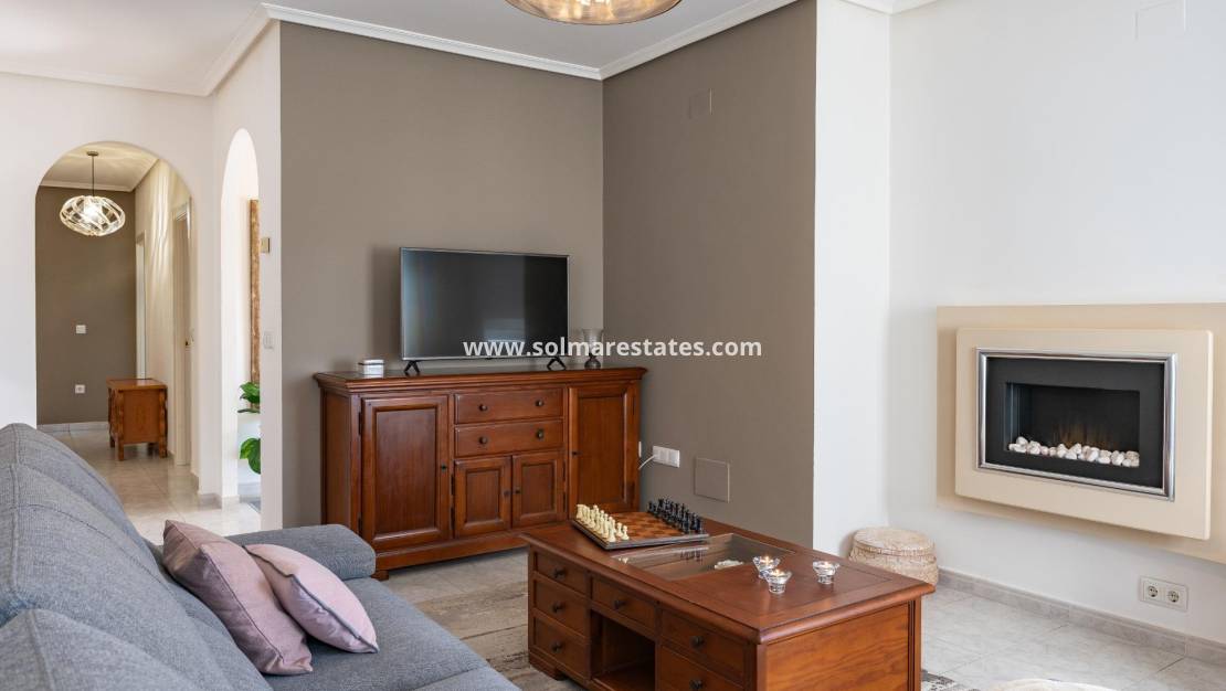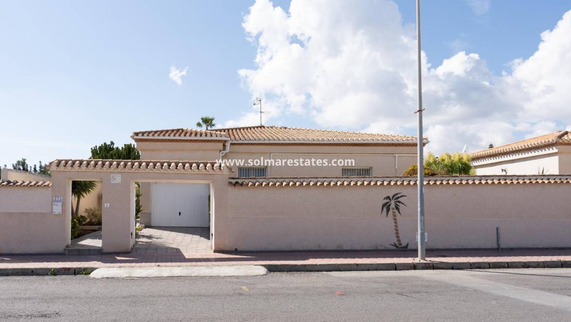 This detached villa, in perfect condition and superbly located in the heart of Playa Flamenca, is truly within walking distance of everything: supermarkets, municipal sports facilities, private sports centers, Zenia Boulevard shopping centre, public school, Town Hall, shops, medical services, and the beaches of Orihuela Costa.~~The Saturday market is located on the same street as the property, offering direct access so you can enjoy shopping for fresh fruit, vegetables, and traditional products, as well as the atmosphere of living in a small Spanish town.~~The plot size of this property is 525 m2, offering many possibilities to enjoy the outdoor space, including a pool area, barbecue, solarium, pergolas, and parking. It is also very easy to maintain, with terraces, artificial grass, and gravel areas designed to keep the garden and outdoor areas in perfect condition without requiring excessive work. There is also an exterior access storage room next to the barbecue and terrace area, allowing convenient use without needing to enter the house when enjoying the pool area.~~Parking is available within the plot itself, with automatic vehicle access gates and a private garage-storage area to keep your vehicle protected from the Alicante sun. The pool area is perfect for sunbathing in privacy, while the built-in barbecue and wooden pergola allow you to fully enjoy the potential of the plot thanks to its south-facing orientation, providing sunshine almost all day and natural light throughout the main living areas of the property.~~At the entrance of the house there is a glazed solarium terrace with a traditional Spanish tiled roof. In winter, when the sun is lower, it is perfect for enjoying the sun, while in summer, by opening the glass windows and benefiting from the shade of the roof, it becomes a cool and ventilated space ideal for reading or spending time with family in a covered semi-outdoor area.~~From this covered terrace with arches, there is access both to the garage area and to the house itself, making it especially convenient to bring shopping directly from the car into the home.~~Through the entrance hall you reach the living room, which features an electric fireplace and south-facing windows that provide excellent natural light and sunshine. From here you access the independent kitchen-dining area, separated by doors so you can cook without smells or smoke spreading to the rest of the house.~~The kitchen has patio doors leading directly to the pool and terrace area, making outdoor living very convenient. It is equipped with kitchen units and appliances.~~The house has three spacious bedrooms with built-in wardrobes, one bathroom with a walk-in shower, and another full en-suite bathroom in the master bedroom featuring a walk-in shower and a jacuzzi.~~In summary, this is a detached villa located in a central and very well-connected area, with excellent outdoor spaces for leisure and family enjoyment. The property is in perfect condition and ready to move into. A viewing is highly recommended to fully appreciate its excellent features.~~Price: €585,000. Taxes and purchase expenses not included (according to applicable regulations). A full breakdown of additional costs will be provided prior to reservation.~~In the case of a transaction with dual agency, the professional fees payable by the buyer will be 1.5% of the final purchase price, with a minimum of €3,000, plus VAT (21%), unless otherwise expressly agreed. These fees are not included in the advertised price.