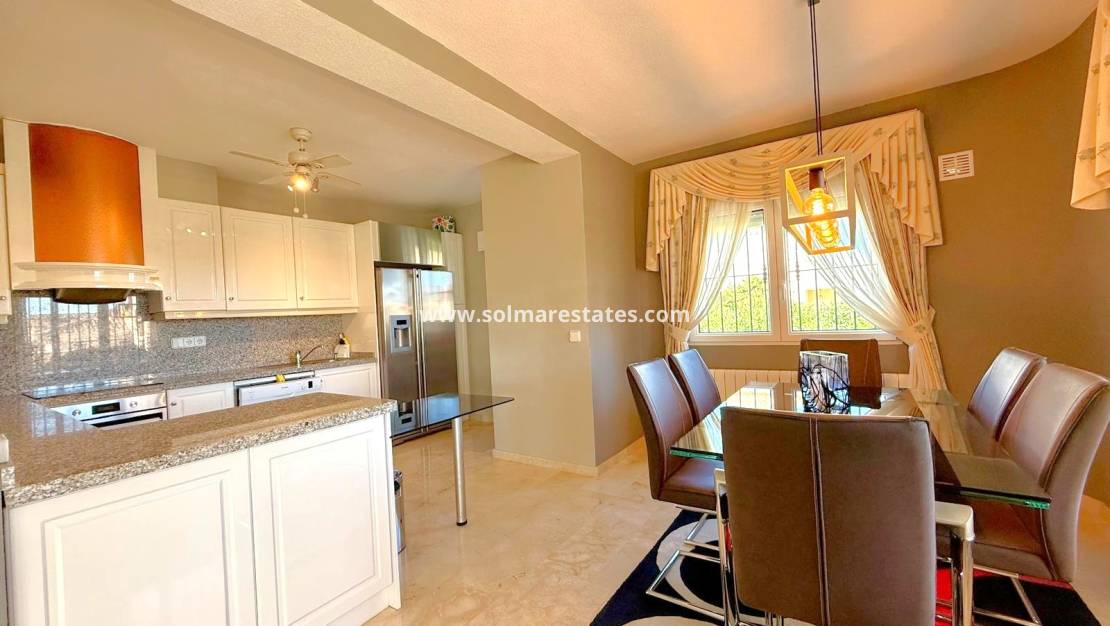 Set on a generous 505 m² plot, this beautiful detached villa offers spacious living, excellent outdoor areas, and future potential in a prime Villamartín location. The property features a large garden, outdoor dining area, and a private saltwater swimming pool with a newly installed pump—perfect for enjoying the Mediterranean lifestyle.