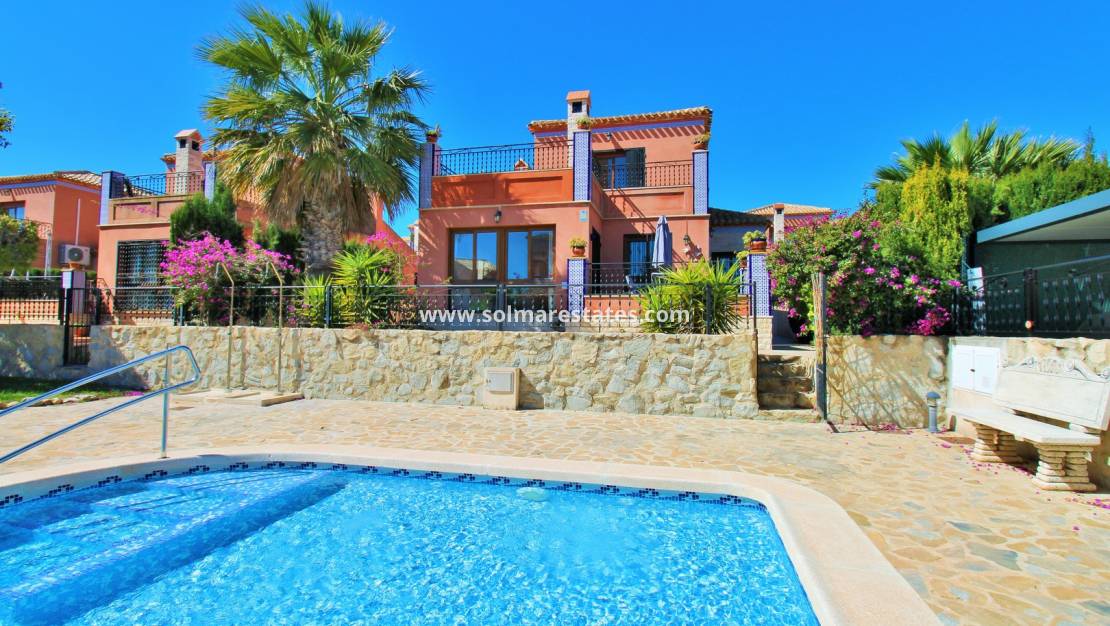 This exceptional 3-bedroom detached villa occupies a prime poolside position within the prestigious gated community of La Cañada in San Miguel de Salinas. Boasting stunning Mediterranean Sea views, peaceful surroundings, and a practical, well-designed layout, the property perfectly blends comfort, privacy, and outdoor living.