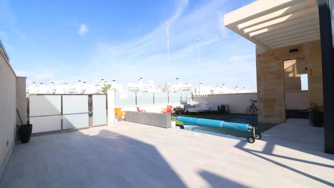 Located in the prestigious Lomas de Cabo Roig, this spectacular independent villa sits on a generous 230 m² plot and offers 140 m² of stylish living over two floors. Designed for comfort and modern living, the property features three bedrooms—including one on the ground floor—and three contemporary bathrooms.