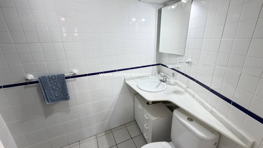 The property features two spacious bedrooms, both with en-suite bathrooms, providing excellent privacy and convenience. The bright open-plan living area leads out onto a private balcony, while the standout feature is the large rooftop solarium—ideal for sunbathing, dining, or entertaining year-round in the Costa Blanca climate.