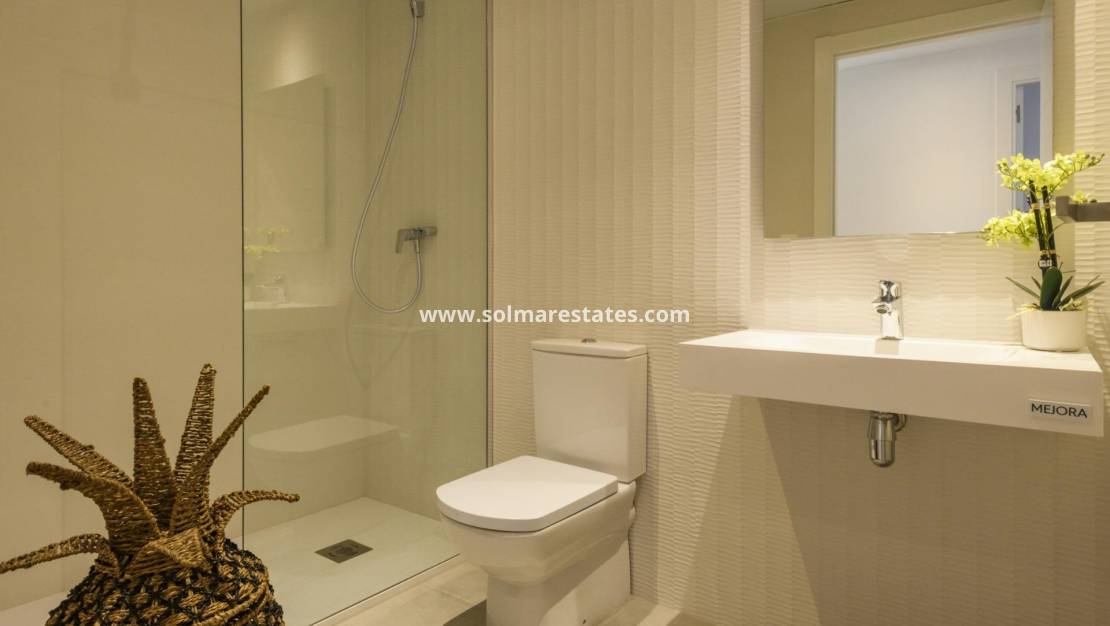 Just 1000 m from the beach and a short drive from shopping centres, famous golf courses, restaurants with exquisite gastronomy and major cities such as Alicante and Murcia just 1 hour away. And all this in a climate with 300 days of sunshine a year and almost 20ºC average annual temperature. The perfect place for your holidays or to establish your permanent residence.