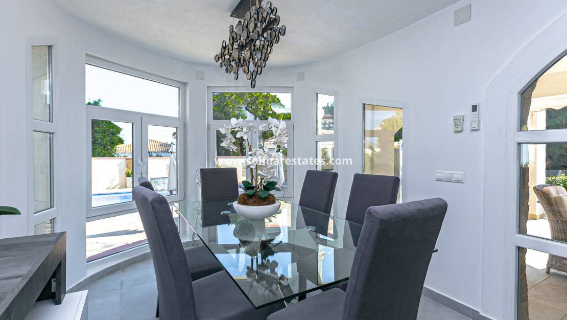 This stunning single-level villa has been fully renovated to an outstanding standard, blending contemporary luxury with Mediterranean charm. Set on a generous 1,300 m² private plot, the property offers 344 m² of built space, surrounded by beautifully landscaped, low-maintenance gardens and complete privacy within secure perimeter walls. Despite its tranquil setting, the villa is within walking distance of a wide range of amenities, including restaurants, cafés, bars, and supermarkets, and just minutes from prestigious golf courses and the blue-flag beaches of the Orihuela Costa.