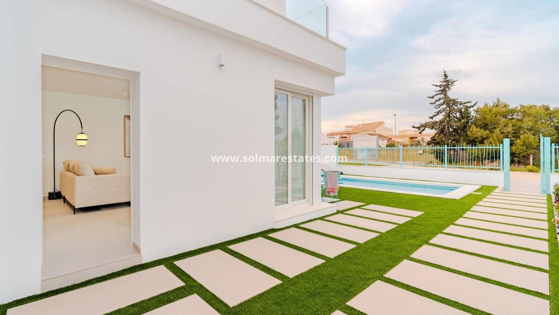New Build Villas Near La Serena Golf and the Beach in Los Alcázares Discover the exclusive New Build Villas in the prestigious Torre del Rame area of Los Alcázares, Murcia. Known for its Mediterranean climate, this location offers easy access to both La Serena Golf and the beautiful beaches of the Mar Menor, making it an ideal place for leisure and relaxation. Property Options and Features Choose between two stunning villa models: a detached or semi-detached option. Both offer 3 bedrooms, 3 bathrooms, a basement with a garage, a private pool, and a spacious solarium. These modern, elegant designs feature bright, open spaces filled with natural light, high-quality finishes, ducted air conditioning, and underfloor heating in the bathrooms. Each villa also includes a landscaped garden and fully equipped kitchen. Prime Location and Easy Access Conveniently located near the AP7 motorway, the villas are well-connected to the Mediterranean coastline, allowing you to explore the diverse beauty of the region. The area offers a wide range of nearby amenities including supermarkets, shops, sports centers, schools, and pharmacies, ensuring a comfortable, convenient lifestyle in a peaceful residential setting. Nearby Points of Interest La Serena Golf: 1 km Mar Menor Beach: 1 km Murcia Airport: 35 km Cartagena Port: 22 km Local Shopping Center: 3 km