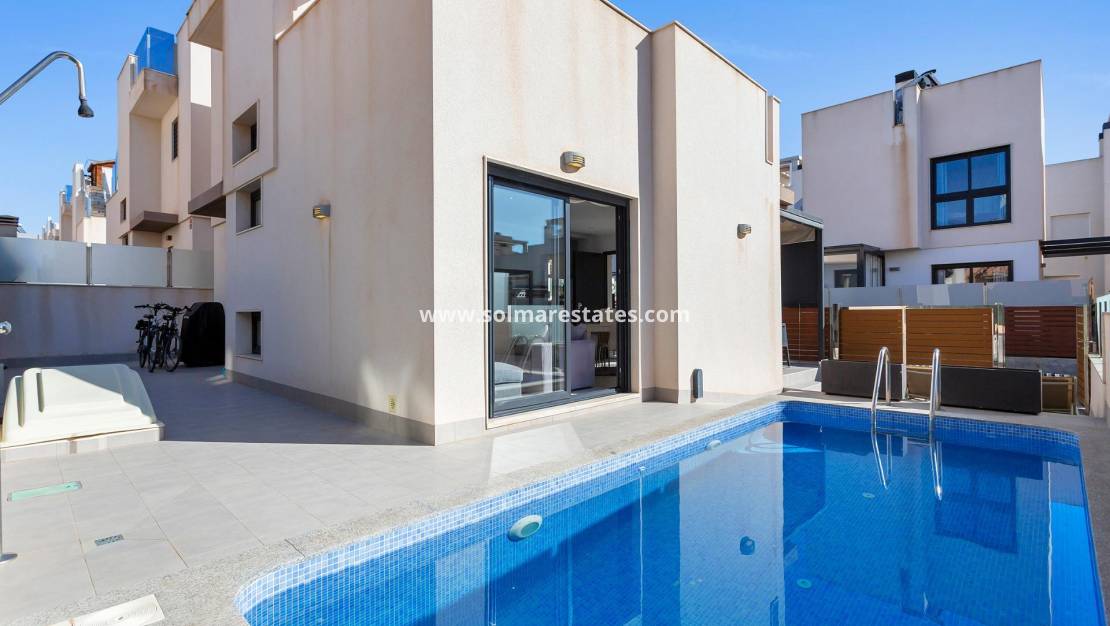 Vi erbjuder till försäljning en spektakulär nybyggd fristående villa som kombinerar elegans och komfort i varje detalj. Denna imponerande fastighet har fem stora sovrum och tre kompletta badrum, vilket ger ett lyxigt och funktionellt utrymme för hela familjen.~~Juvelen i kronan är den magnifika privata poolen, som erbjuder en oas av lugn och avkoppling i avskildhet i ditt eget hem. Dessutom har villan en spektakulär källare, utrustad med ett rymligt vardagsrum, 2 sovrum och ett badrum, som erbjuder extra utrymme perfekt för underhållning, gäster eller till och med som en fristående svit.~~Uppmärksamhet på detaljer och utsökt smak återspeglas i varje hörn av denna villa. Det fullt utrustade köket och vardagsrummet är designade för att kombinera funktionalitet och stil, vilket skapar en mysig och modern atmosfär. De ljusa och rymliga sovrummen erbjuder en fridfull oas med högkvalitativa ytbehandlingar.~~Villans solarium ger fri utsikt som omfattar den naturliga miljön, vilket skapar en idealisk plats att njuta av varma dagar och stjärnklara nätter. Fastigheten ligger i ett område omgivet av tjänster, vilket säkerställer bekvämlighet och tillgänglighet till affärer, restauranger och mer.~~Med en strand bara 3 km bort erbjuder denna fristående villa en perfekt kombination av lyx och närhet till havet. Fullt utrustad och redo att flytta in, denna fastighet är en unik möjlighet för dig som söker ett elegant och bekvämt boende i en exklusiv miljö. Missa inte möjligheten att göra denna villa till ditt hem!