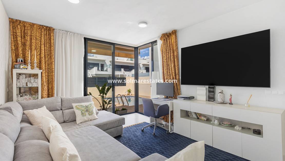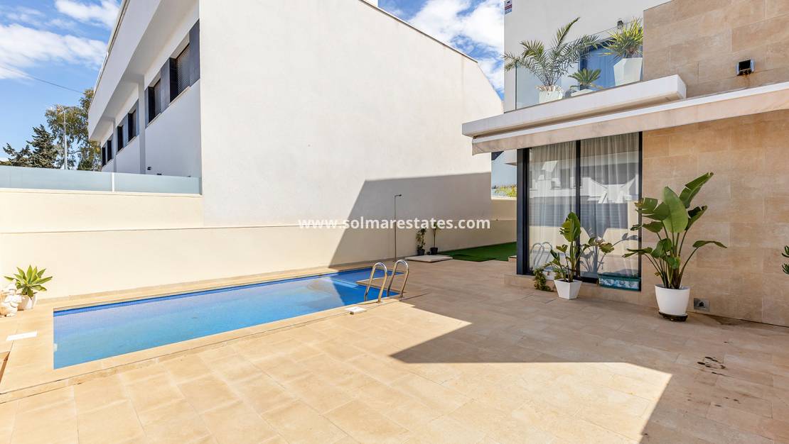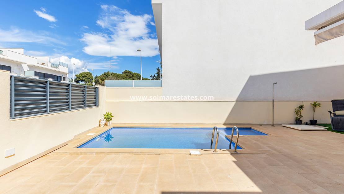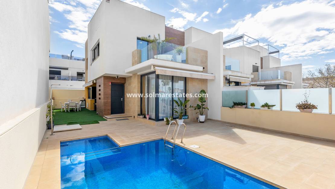 Denna rymliga parhusvilla med 3 sovrum och 3 badrum har ett idealiskt läge bara 5-10 minuters promenad från stränderna i Lo Pagan. Här hittar du alla bekvämligheter i området, butiker, restauranger och den prestigefyllda internationella skolan Castelar College i området inom gångavstånd.