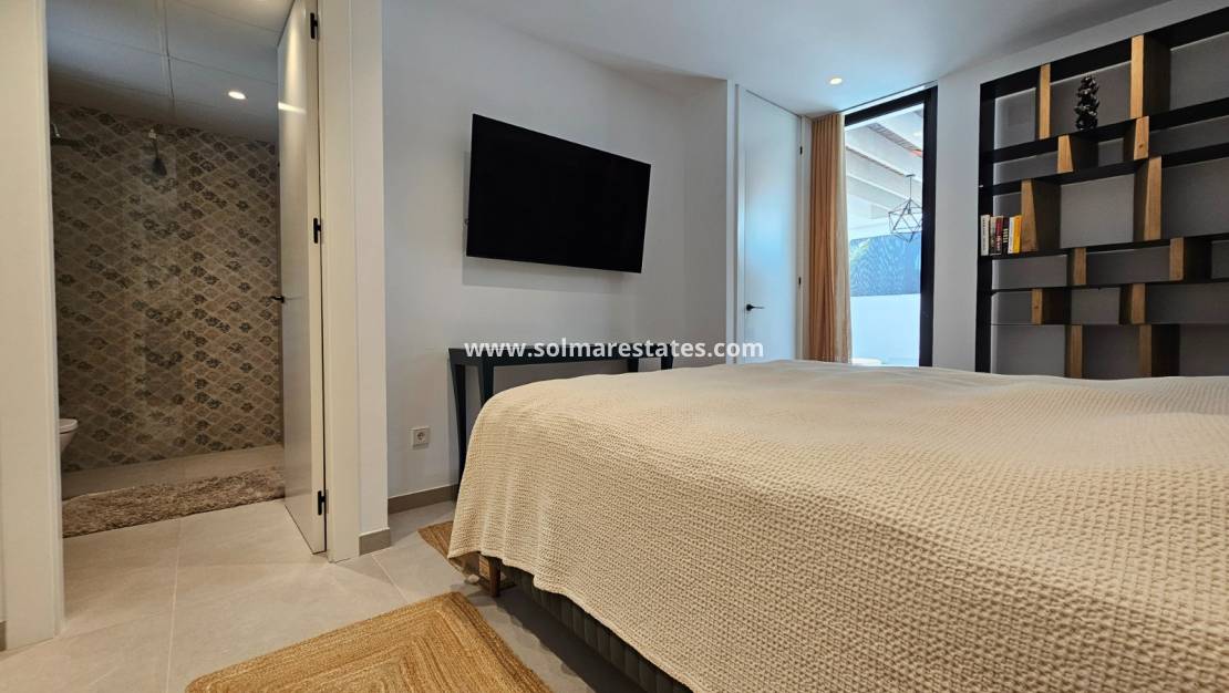 Förbered dig på att bli fängslad av denna fantastiska, nästan nya fastighet, byggd 2022 och designad för modernt boende och enkel njutning! Detta delvis möblerade hem har en noggrant planerad layout och erbjuder 132 M² vackert byggd yta på en generös tomt på 359 M², kompletterad med en vidsträckt 62 M² terrass perfekt för att njuta av solen. Föreställ dig att slappa vid din privata 8x4 uppvärmda pool upplyst av LED-lampor, samtidigt som du njuter av de miljövänliga fördelarna med solpaneler som drastiskt minskar dina elräkningar. Från den automatiska parkeringsdörren och elektriska persienner till det toppmoderna säkerhetssystemet (invändigt och exteriört) har ingen detalj förbisetts. Med funktioner som luftkonditionering med kanal, Bosch vitvaror och golvvärme i badrummen är komfort och lyx av största vikt. Njut av avskildheten på din konstgräsgräsmatta, inramad av naturliga stenväggar, fruktträd och frodiga palmer, allt hålls frodas av ett automatiskt bevattningssystem. Detta är mer än ett hem; det är en livsstil som väntar på att bli omfamnad!