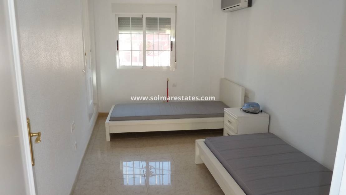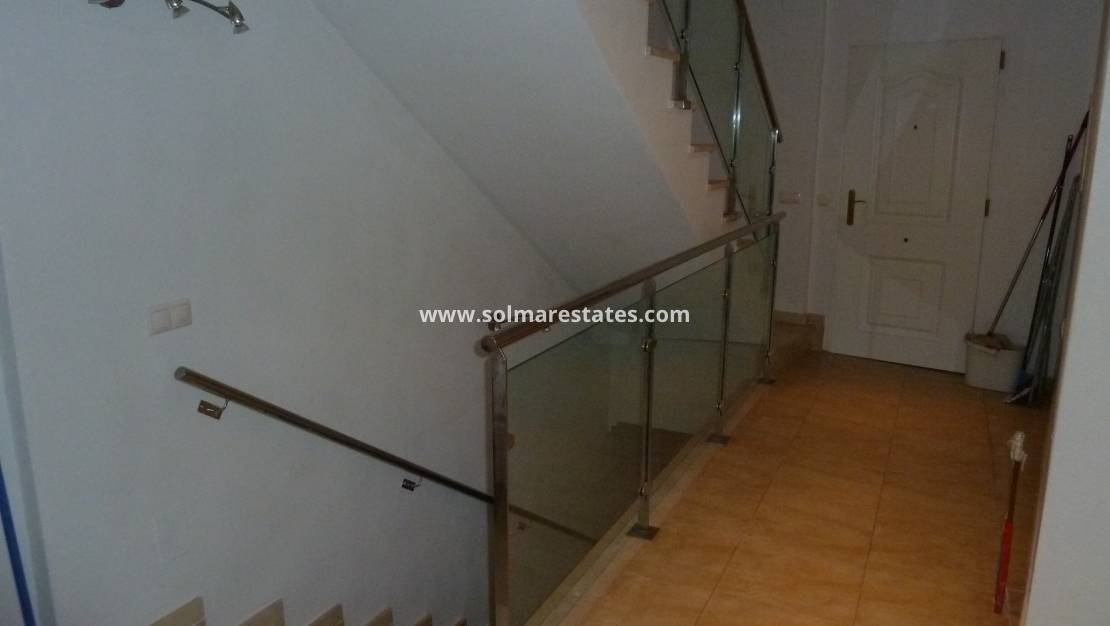 En sydvästläge, tre sovrum, ny parhusvilla i Rojales, helt unik finish av hög kvalitet; njuter av spektakulär utsikt över landskapet, med de berömda grottorna mittemot. Gångavstånd till alla bekvämligheter, dvs stormarknad, affärer, barer, apotek, kommunal idrottsplats & pool, vårdcentral; nära till golf och stranden bara 12 minuters bilresa. Villan består av: ljus entré vestibul med trappor som leder till huvudbostaden: vardagsrum/matsal med 3 dubbeldörrar, 2 leder ut till en balkong, så är ett mycket ljust och luftigt rum; separat utrustat kök; 3 dubbelrum med inbyggda garderober; 2 moderna duschrum med dubbla duschkabiner. Intern trappa till ett vackert stort solarium där du kan koppla av timmarna med oförstörd utsikt; högt i tak dubbelgarage, stor möjlighet att utöka boendet. Många extrafunktioner: plats för en pool, luftkonditionering, förinstallation för centralvärme.