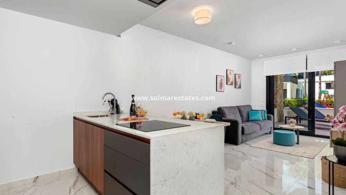 Denna pärla ligger i Los Altos, ett av de mest eftertraktade områdena i Orihuela Costa. Det erbjuder en rad bekvämligheter i närheten. Bara en kort promenad bort hittar du en stormarknad och andra butiker för alla dina dagliga behov, och shoppingcentret La Zenia Boulevard ligger också i närheten. De vackra stränderna i Orihuela Costa ligger bara en kort bilresa bort, perfekt för en dag i solen och vid havet. Dessutom finns det många restauranger och drycker i området, där du kan njuta av en mängd olika restauranger och kaféer. För golfentusiaster finns det även flera golfbanor i närheten.