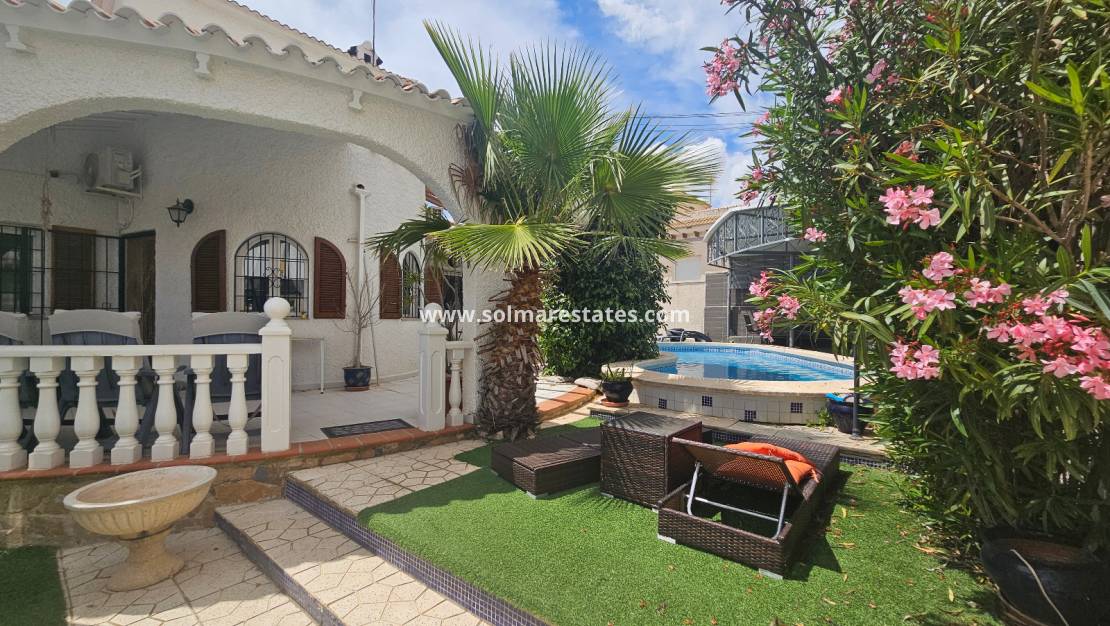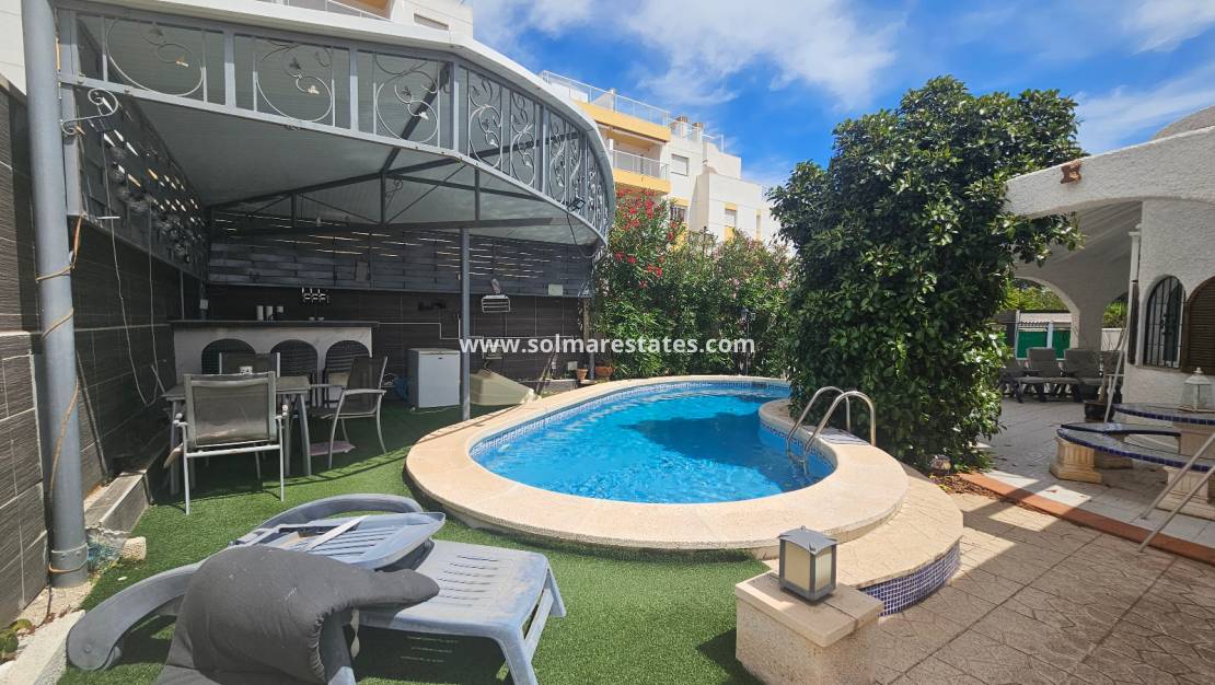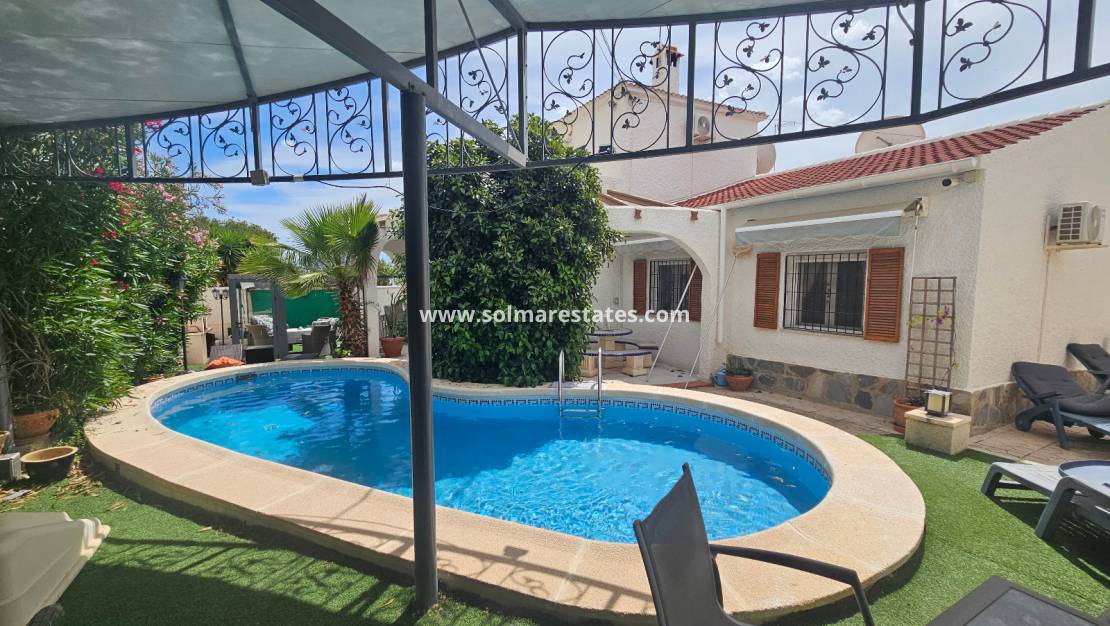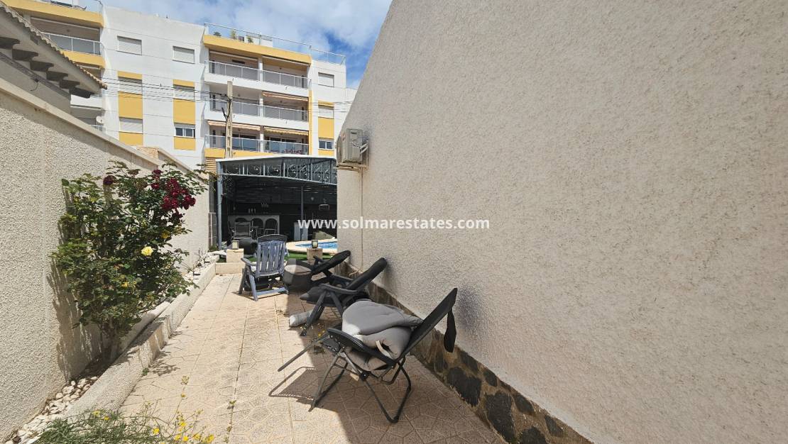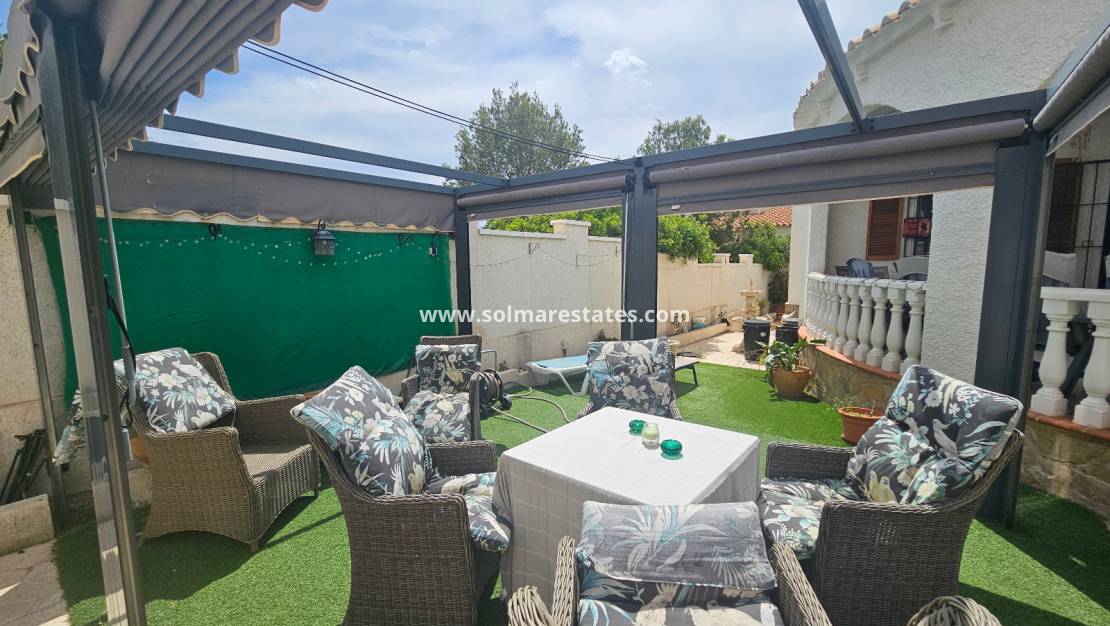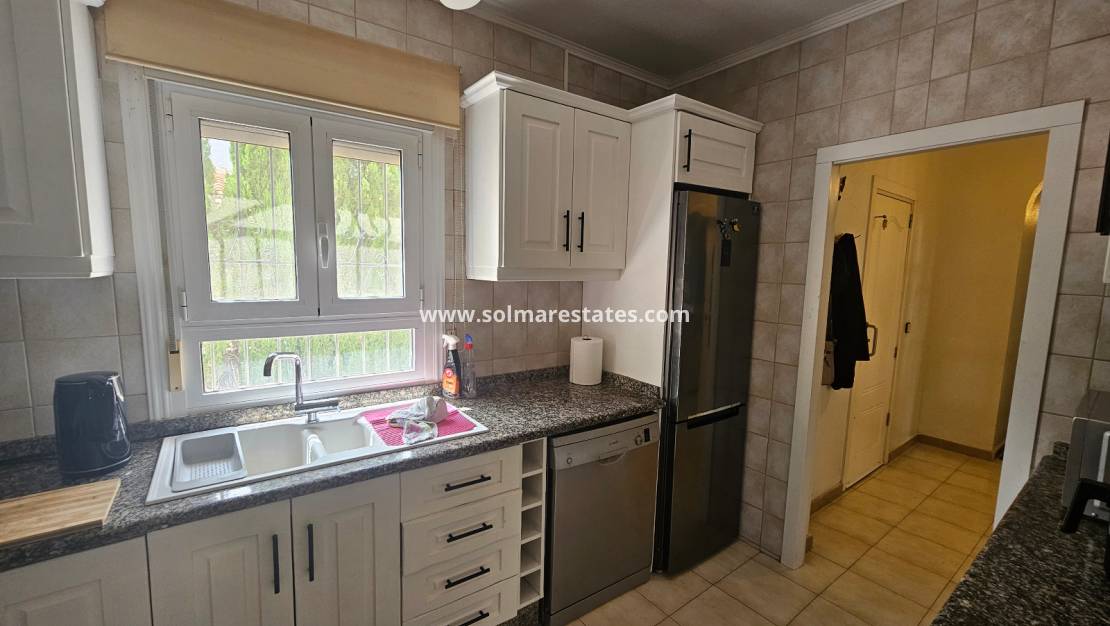 Fastigheten ligger precis bakom det mycket populära kommersiella centrumet La Fuente där du hittar ett stort utbud av barer, restauranger och butiker, inklusive en stormarknad och ett apotek. Lokala bussar och taxibilar stannar precis utanför La Funete. De vackra stränderna med blå flagg i Orihuela Costa ligger bara 5 minuter bort med bil, eller så kan du hoppa på lokalbussen. Villamartin Plaza ligger cirka 20 minuters promenad bort. Las Ramblas, Campoamor och Villamartin golfbana ligger alla bara några minuter bort med bil, och Alicantes flygplats ligger 50 minuters bilresa bort.