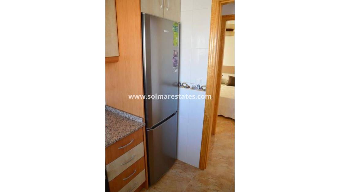 Vardagsrum/matsal, separat kök, 2 x dubbelrum, 1 x badrum, balkong, gemensamt solarium på taket, hiss, säkert gated community och mycket mer.