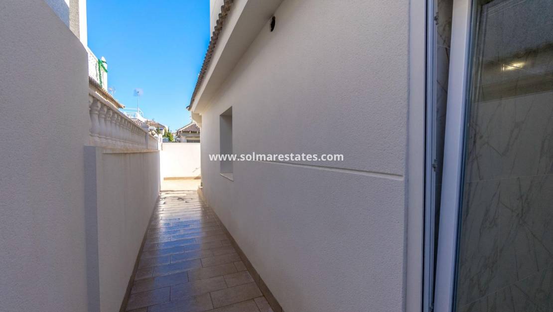 Nyrenoverad parhusvilla i El Chaparral, belägen inom kort bilresa från butiker, barer, restauranger, stormarknader och staden Torrevieja. Den är uppdelad i två hus med separat ingång. På bottenvåningen har vi ett hus på 54m2, bestående av 2 sovrum, ett badrum, vardagsrum med matplats och kök i öppen planlösning. På första våningen en lägenhet med separat ingång, på cirka 35m2, bestående av 1 sovrum med dubbelsäng, vardagsrum, eget kök och badrum; med en stor terrass med utsikt över omgivningarna. Den omfattande renoveringen genomfördes nyligen med kvalitetsmaterial och modern inredning. Golvvärme i badrummen. Säljs med helt nya möbler och vitvaror. Parkeringsplats för bilen på tomten. Denna villa erbjuder en harmonisk kombination av komfort och stil.