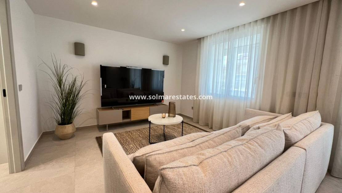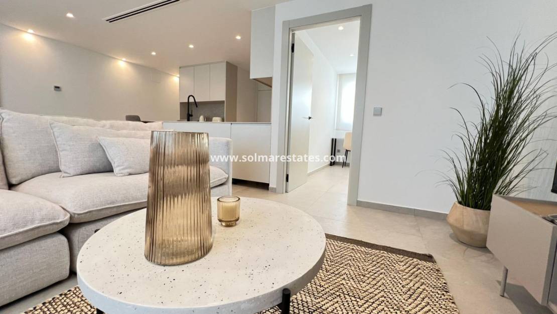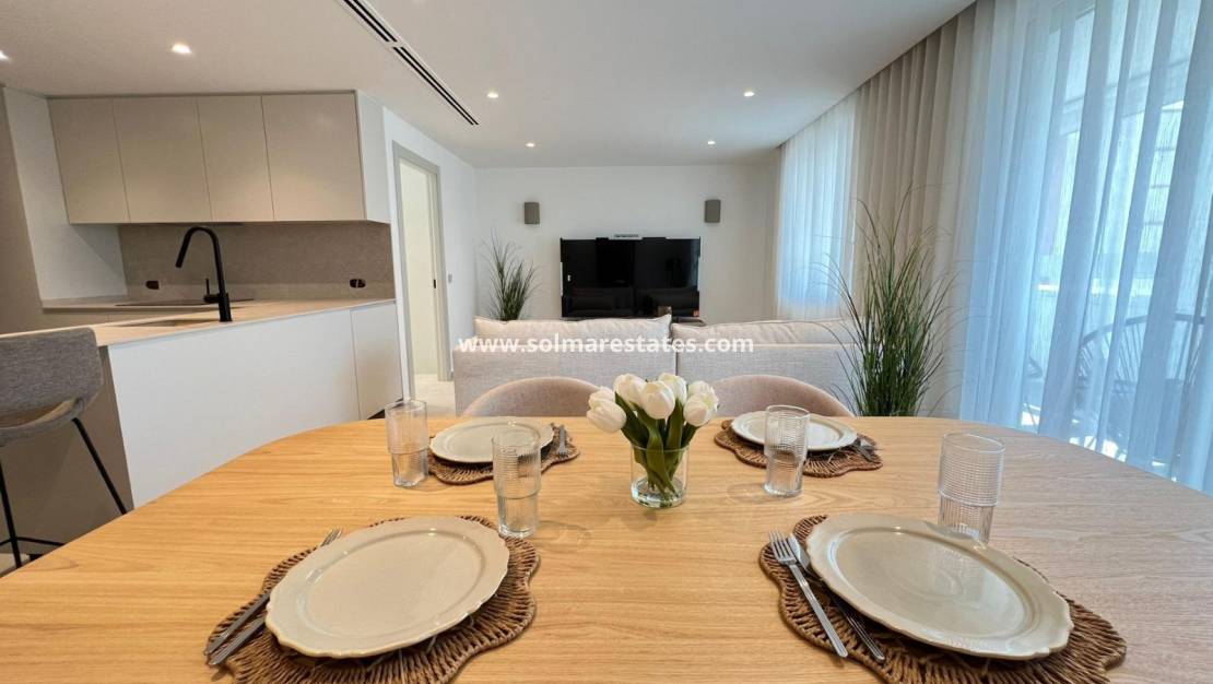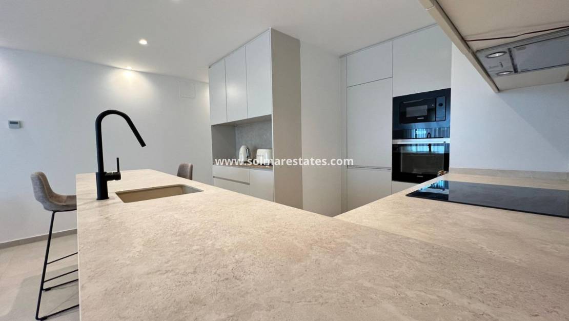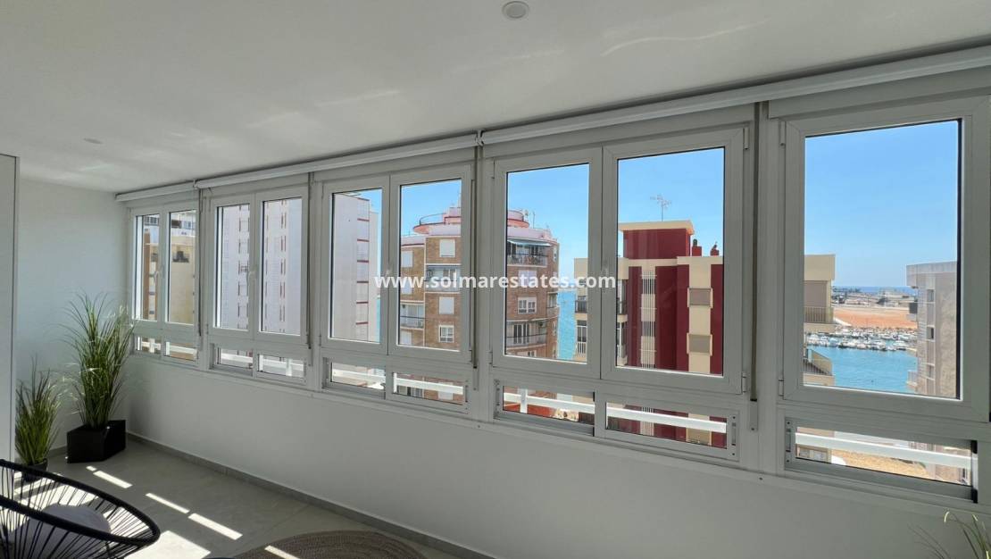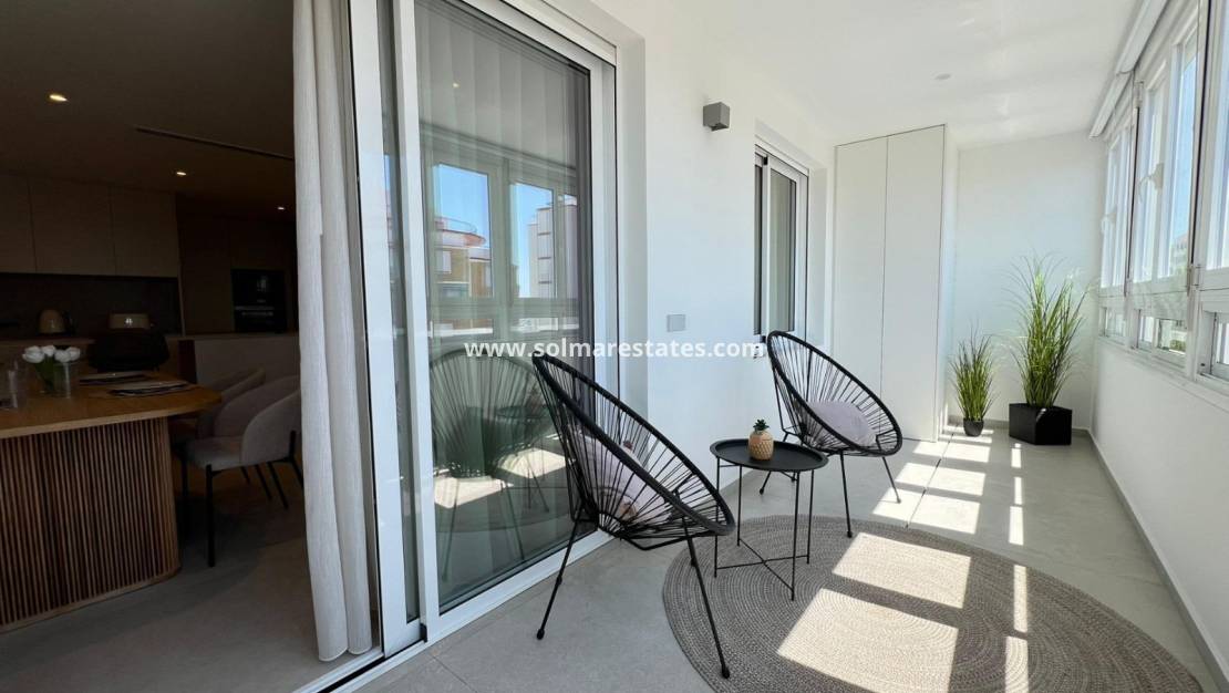 Vardagsrum/matsal, nyutrustat kök med öppet kök, 3 x dubbelrum, det största sovrummet har ett nyutrustat eget duschrum, 1 x nyutrustat gästduschrum, inglasad balkong utanför vardagsrummet med havsutsikt, säkert gated community, hiss och mycket, mycket mer.