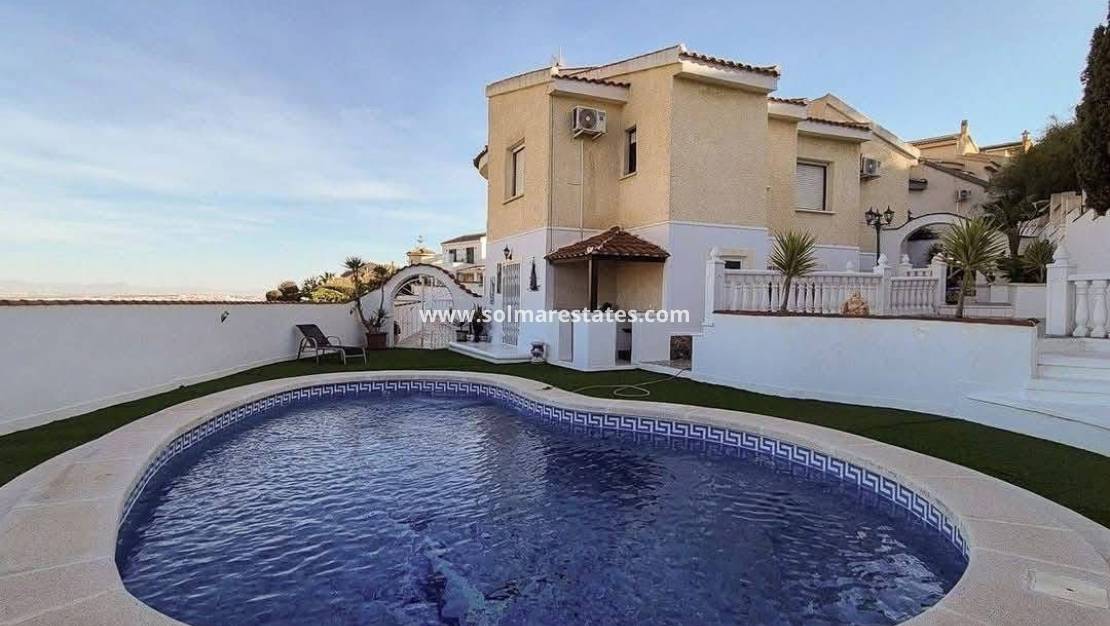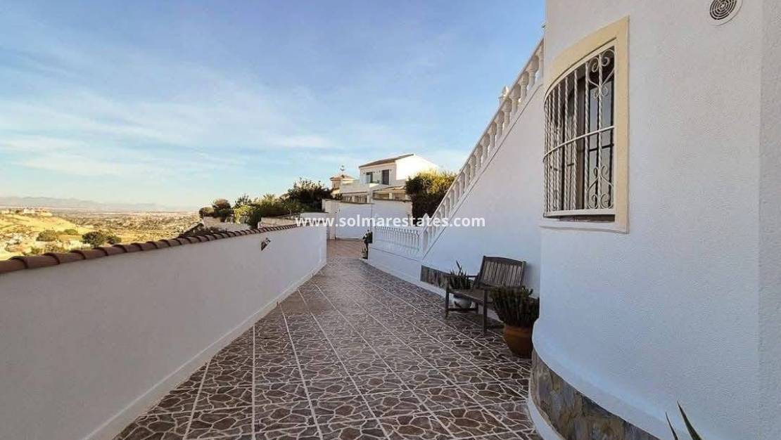 Detta imponerande hem har fem välproportionerade sovrum, tre moderna badrum och flera vardagsrum utformade för både avkoppling och underhållning. Villans höga läge erbjuder vidsträckt utsikt över golfbanan och de omgivande kullarna, medan dess stora terrasser, privata pool och frodiga trädgårdar inbjuder dig att njuta av Costa Blancas solsken året runt.