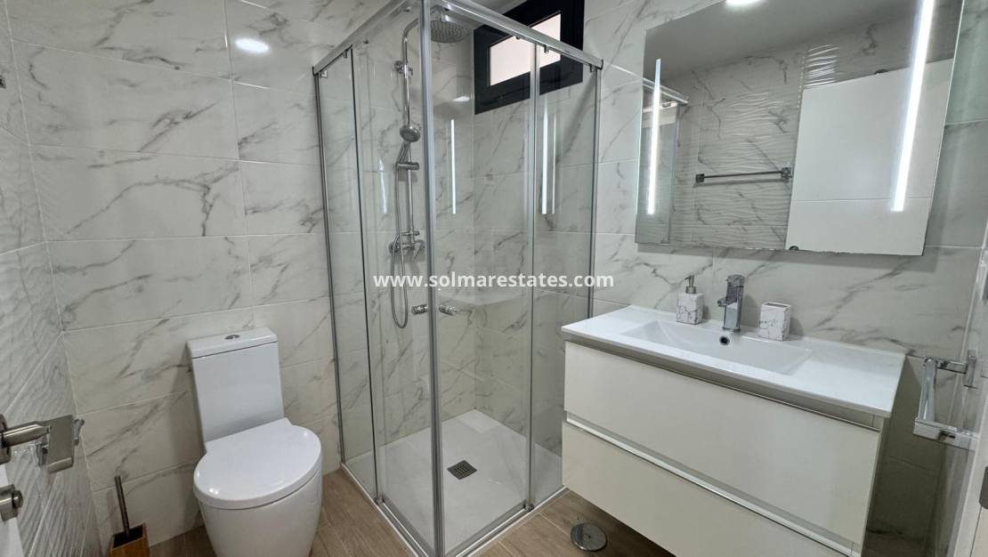 Vardagsrum/matsal med varm och kall luftkonditionering, öppet kök, 2 x dubbelrum, det största sovrummet har eget duschrum och dörrar ut mot trädgården, 1 x gästduschrum, täckt terrass, trädgård fram och bak, byggmaterial av högsta kvalitet, gemensam pool och trädgårdar, underjordisk parkeringsplats och mycket mer.