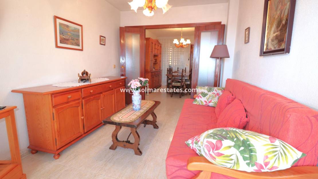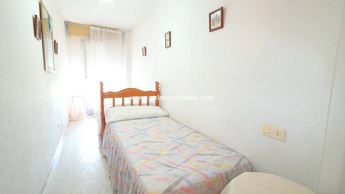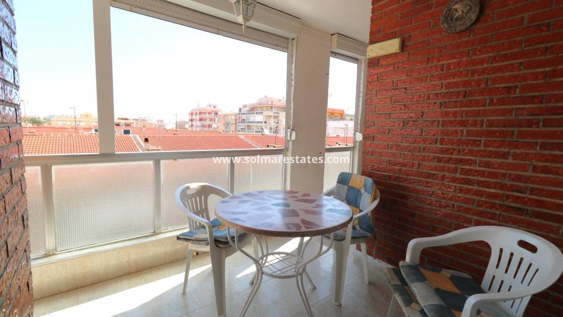 I Torrevieja, Playa de los Naufragos-området, 88 m² yta, 10 m² terrass, 300 m² från stranden, 3 dubbelrum, ett badrum, fastighet i gott skick, utrustat kök, österläge. ~ Extra: tillgänglighet för funktionshindrade, inbyggda garderober, hiss, balkong, galleri, möbler, gemensam pool, terrass, bussar, köpcentrum, kust, parker, stormarknader, urbanisering, havsutsikt ~