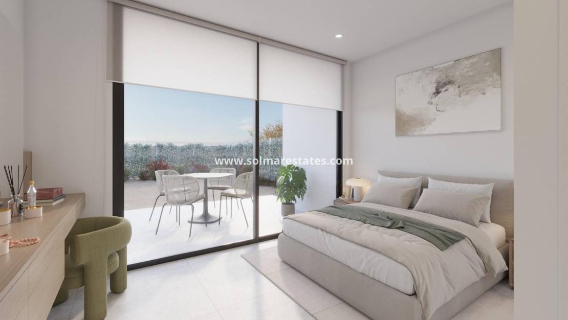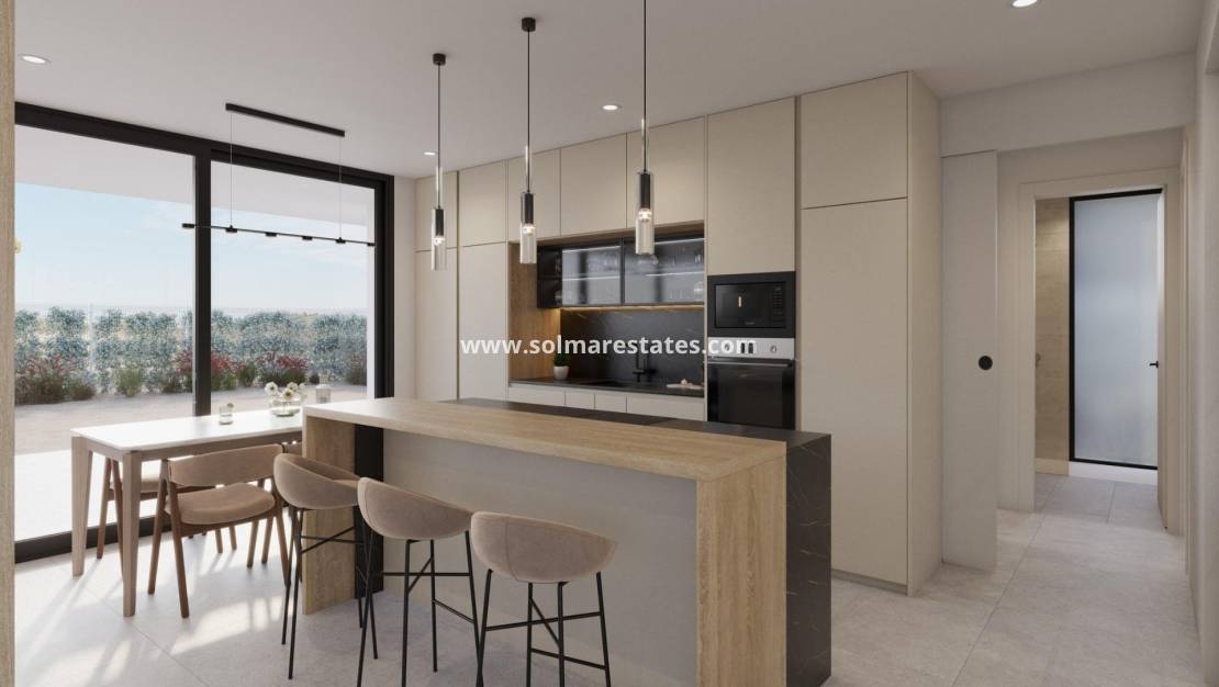 Exklusiva villor i Hacienda del Álamo Golf Resort, Costa Cálida Moderna villor i en av Spaniens bästa golfresorter Upptäck en unik möjlighet att köpa en nybyggd villa till ett exceptionellt pris i semesteranläggningen Hacienda del Álamo Golf Resort, belägen mellan de historiska städerna Cartagena och Murcia, i hjärtat av Costa Cálida. Dessa moderna villor är designade för att erbjuda komfort, avskildhet och elegans, och ligger i en exceptionell miljö dedikerad till golf och fritid. Varje fastighet har en rymlig planlösning med 3 sovrum och 2 badrum på en våning. Privat solterrass på taket. Med tomter från 378 kvadratmeter och en byggnadsyta på 111 kvadratmeter erbjuder dessa bostäder gott om utrymme för både inomhus- och utomhusliv. Högkvalitativa egenskaper och finish Dessa villor är utrustade med alla moderna bekvämligheter för att garantera maximal komfort och stil, inklusive: Trädgård med droppbevattningssystem Fullt utrustat kök med skåp och vitvaror ingår Förinstallation för luftkonditionering Badrum med möbler, speglar och duschväggar Aluminiumfönster med termisk brytning och dubbelglas Tillgång till en stor gemensam pool med naturgräs och lekplats Möjlighet att lägga till en privat pool mot extra kostnad Lyxigt boende på Hacienda del Álamo Golf Resort Hacienda del Álamo är känt för att vara en av Spaniens bästa golfresorter, eftersom det erbjuder sina invånare en avslappnad, sportig och bekväm livsstil. 18-håls golfbana och golfakademi Sportfaciliteter som inkluderar tennis, padel, gym och fitnessklasser Huvudklubbhus med panoramautsikt, en restaurang med medelhavsmat och soliga terrasser 4-stjärnigt hotell och spa för avkoppling och välbefinnande Utrymmen för hela familjen, med lekplatser, pooler och cykelbanor. Traditionell spansk by med butiker, kaféer och nya restauranger som snart öppnar. Strategiskt läge med utmärkta förbindelser Corvera flygplats (Murcia): 18 km (ca 15 minuter) Cartagena: 36 km Murcia centrum: 40 km Mar Menor-stränderna: 28 km Köpcentrum (Dos Mares, Espacio Mediterráneo): mindre än 30 km Ditt drömhus vid golfbanan väntar på dig Oavsett om du letar efter en permanent bostad, en semesterbostad eller en smart investering på Costa Cálida, är dessa villor på golfbanan i Hacienda del Álamo det perfekta valet. Kontakta oss idag för mer information eller för att boka en personlig visning.