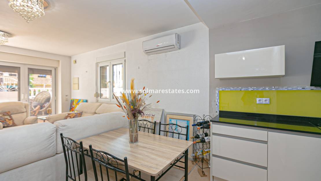 Detta charmiga radhus ligger i La Zenia, Orihuela Costa, bara 900 meter från stranden, i ett av de mest eftertraktade områdena på Costa Blanca. Delvis renoverad fastighet har ett utökat kök, vilket ger en större känsla av rymd och funktionalitet på bottenvåningen.