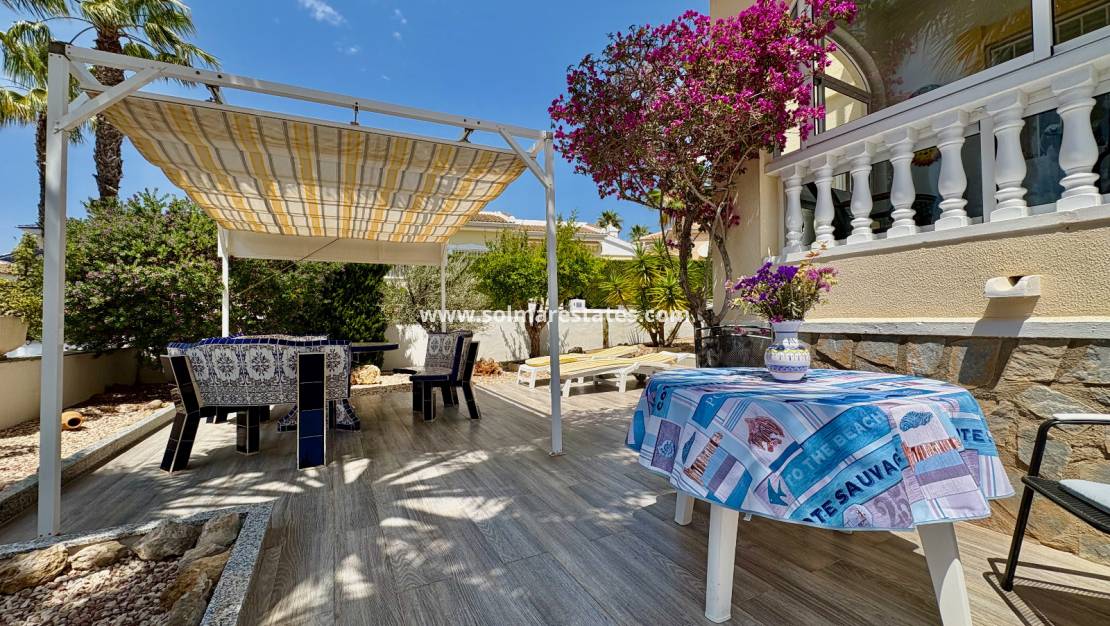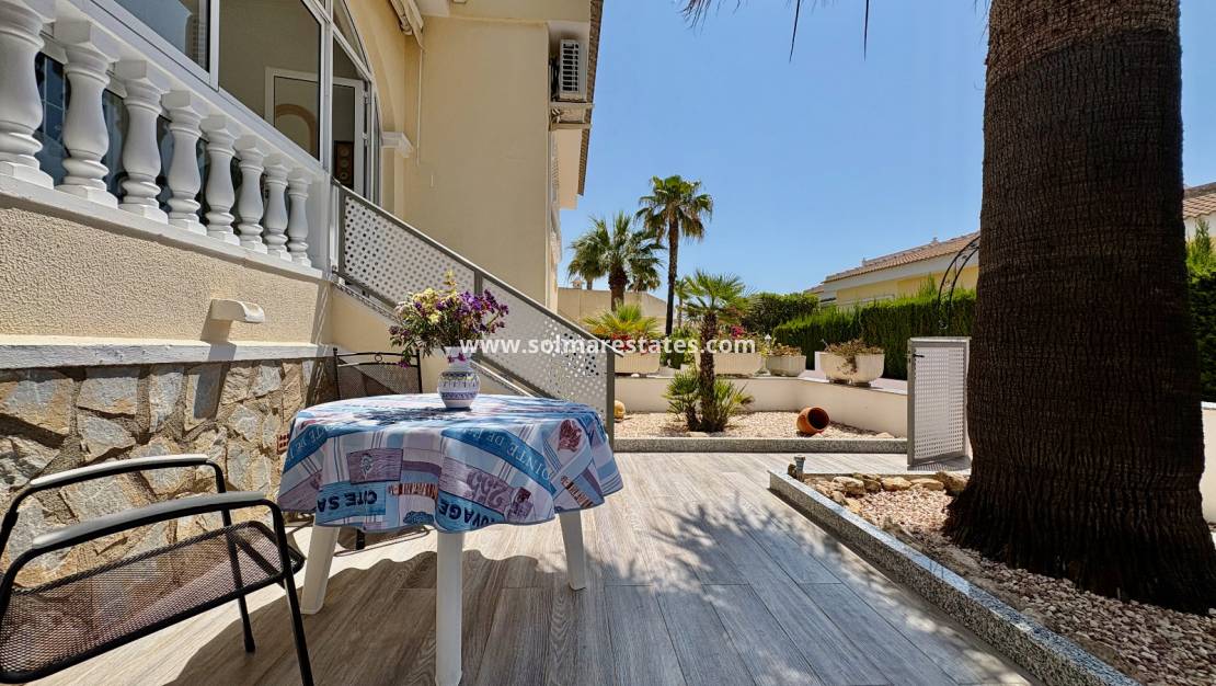 Villan ligger på en generös tomt på 253 m² med en byggd yta på 85 m² , allt praktiskt arrangerat på ett plan. Utomhuslivet är en höjdpunkt, med en 17 m² uteplats och en rymlig privat trädgård på 151 m² – perfekt för att njuta av medelhavssolen, underhålla gäster eller skapa din egen fritids- och grillplats.