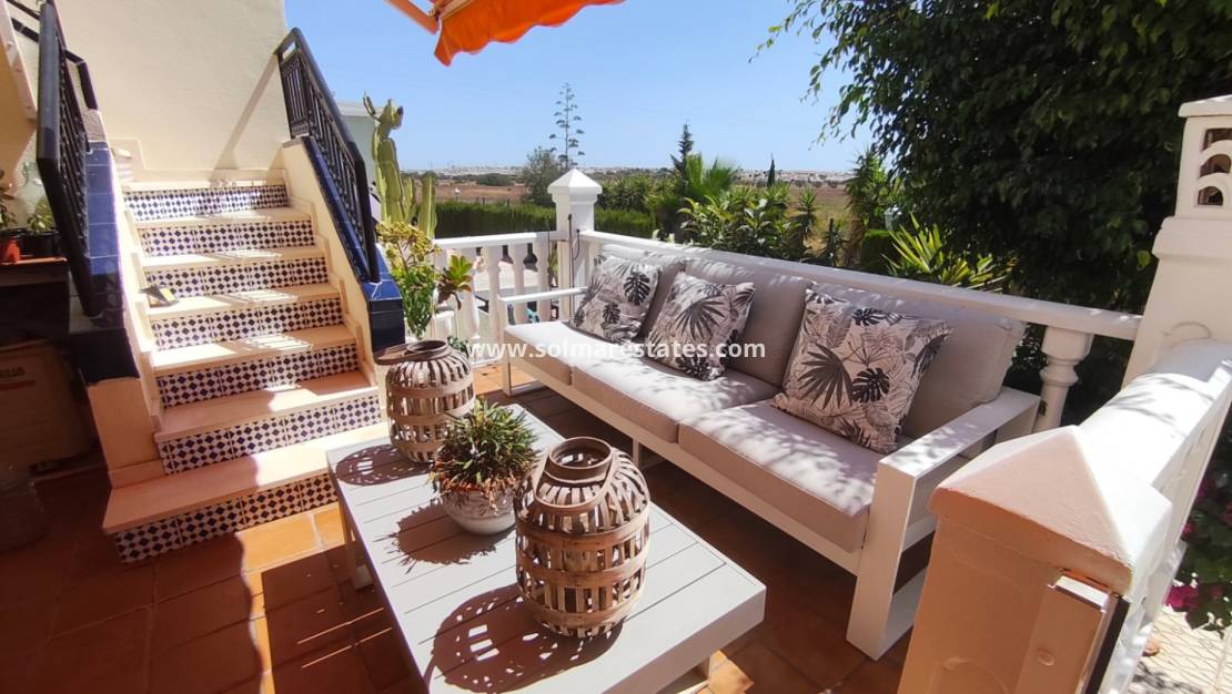 Vi är glada att presentera denna vackra bungalow med 3 sovrum och 2 badrum belägen i det eftertraktade Residencial Valencias på södra sidan av Villamartin.