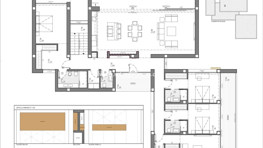 NYBYGGD LYXVILLA I CUMBRE DEL SOL Nybyggd modern villa belägen i Cumbre del Sol Resort, ett exklusivt område med stora lyxvillor som elegant har utsikt över Medelhavet. Nybyggd villa är utformad för njutning och rekreation. Alla extrafunktioner i denna moderna lyxvilla finns på denna tomt på mer än 1 300 kvadratmeter. En villa med 3 sovrum, 5 badrum och parkering för 4 bilar: 2 platser under en täckt veranda och 2 i ett låst garage. Det största sovrummet har en-suite badrum och en rymlig klädkammare, dess veranda gör att du kan beundra Medelhavet i all sin skönhet. De andra två sovrummen delar en fantastisk terrass och en extra zon, som kan användas för rekreation eller som kontor. Båda har eget badrum. För extra komfort ligger vardagsrum/matsal och kök på samma våning. Köket ansluter till vardagsrummet genom en ö, så ingenting skiljer dig från dina vänner. Stora fönster leder till solarium med infinitypool som smälter in i havet. Exklusiviteten i denna moderna villa ligger i dess nedre våning, som är avsedd att underhålla hela familjen. Här finns ett privat gym med badrum och bastu samt ett biorum. Allt kommer med en veranda under vilken du kan koppla av omgiven av lugnet i havet. Om du letar efter ett hem som är annorlunda, ger Villa det extra utrymmet för att göra din dag till speciell.
