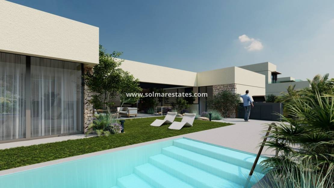 NYBYGGDA VILLOR I ALTOANA GOLF RESORT, MURCIA Nybyggnation av vackra villor i Altaona Golf Resort, Murcia. Villan har 4 sovrum, 3 badrum, öppet kök med vardagsrum och direkt tillgång till trädgården med privat pool och parkeringsplats. Villorna är särskilt utformade för att ge oändlig utsikt över golfbanan, sjöarna och det avlägsna landskapet, både inifrån och utifrån. Trädgårdar och terrasser i söderläge ser till att du kan njuta av den varma vintersolen, och generösa glasfönster ger ytterligare utsikt över regionen från bekvämligheten av interiören. Villorna har utformats för att maximera komfort, avskildhet och effektivitet. inhemska växter har placerats på taken för att skapa en känsla av ett annat naturligt utrymme. Beläget i en privilegierad miljö där vi kan leva lugnt, i kontakt med naturen och bergen, uppnår vi livskvalitet, frisk luft och öppna utrymmen. Exklusivt nybyggt bostadsområde som ligger i Altaona Golf bara 15 minuter med bil från Murcias huvudstadens centrum och 15 minuter från stränderna kan du njuta av lugnet och säkerheten som erbjuds av golfbanan som har 18 hål och komforten att bo nära all service. I den rymliga anläggningen ingår alla typer av tjänster som ett köpcentrum, tennis-, paddel- och basketbanor. Den främre grinden är alltid bemannad, vilket gör Altaona till en plats där barnen kan leka utomhus på ett säkert sätt. Sammanlagt läggs cirka 500 bostäder till för att utgöra Altaona resort, som är spridd över en yta på 3,6 miljoner m2. Här är några av de lokala höjdpunkterna: - Murcia centrum: Centrum av Murcia: 15 minuter. - Stranden: 20 minuter: 20 minuter. - Corveras flygplats: 20 minuter. - Alicante flygplats: Flygplats Alicante: 45 minuter. - Shoppingcenter (La Alberca): 8 minuter. - Sjukhus: 10 minuter.