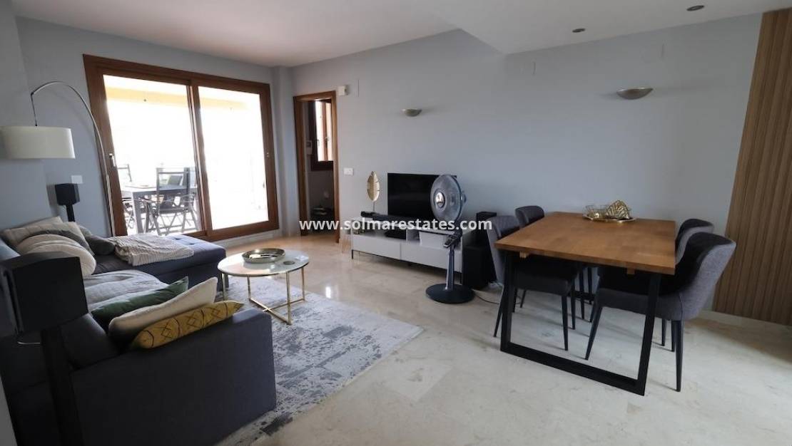 Takvåning i bostadskomplexet La Entrada i Punta Prima. Fastigheten har en total yta på 70 m² och består av 2 sovrum, 1 badrum och ett rymligt vardagsrum med öppet kök.