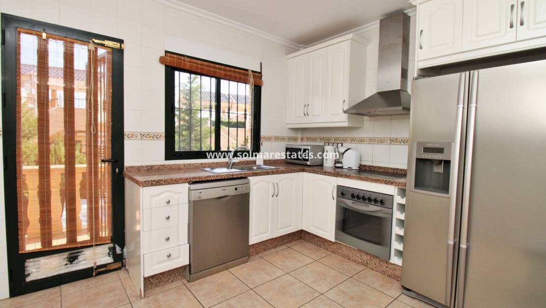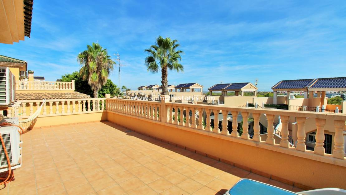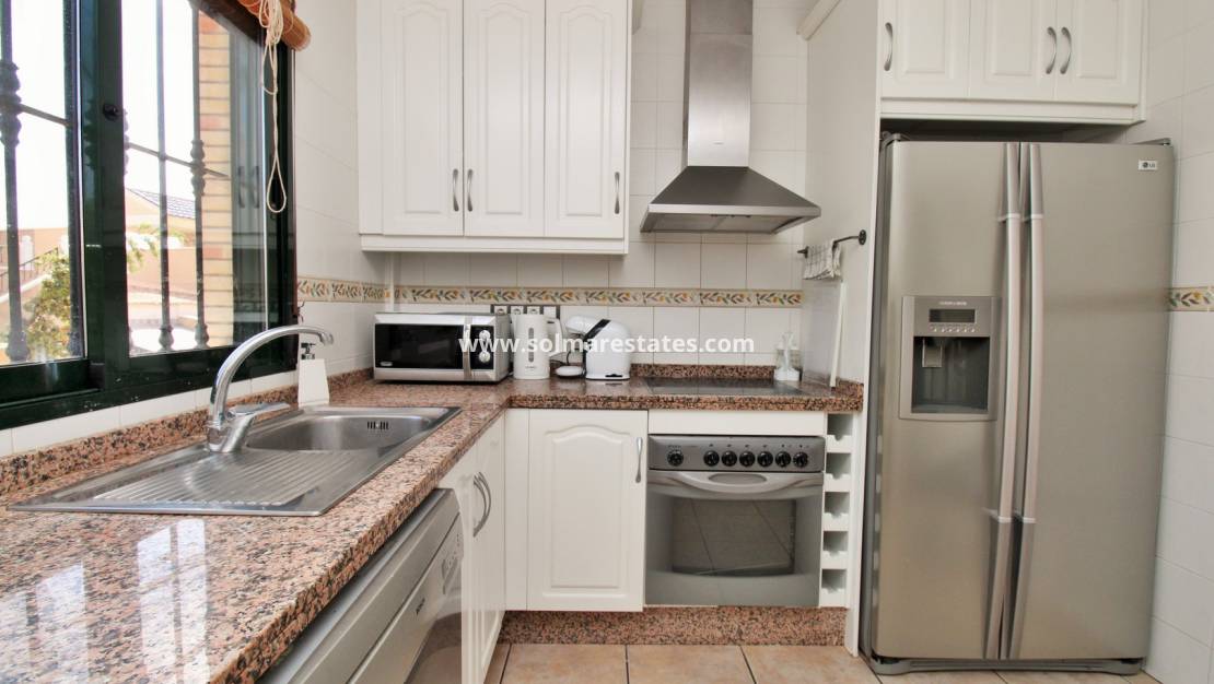 Denna eleganta villa i det eftertraktade området Brisas y Golf II, Villamartin (PAU 26) , erbjuder den perfekta balansen mellan utrymme, komfort och medelhavsliv. Fördelad över tre våningar, ger den en mångsidig planlösning som är idealisk för både heltidsboende och semester.