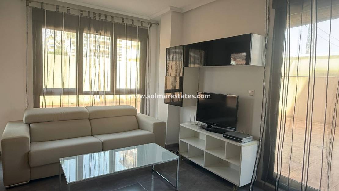 Till salu finns en ljus och mysig hörnlägenhet på bottenvåningen i bostadskomplexet DAMA , bara 2 minuters promenad från havet i det mycket eftertraktade Punta Prima-området (Costa Blanca).