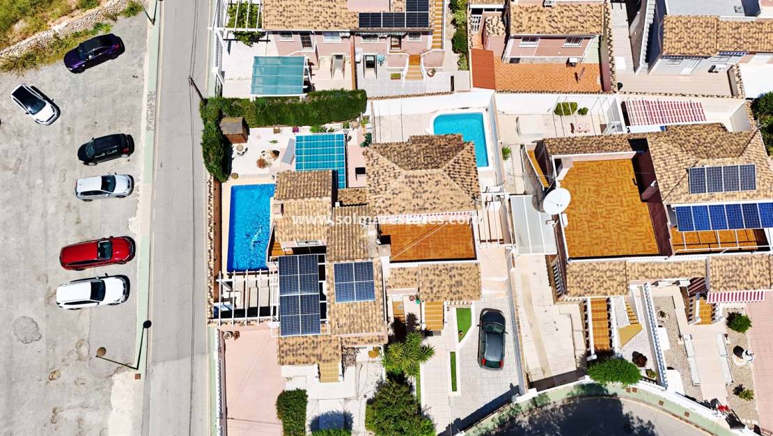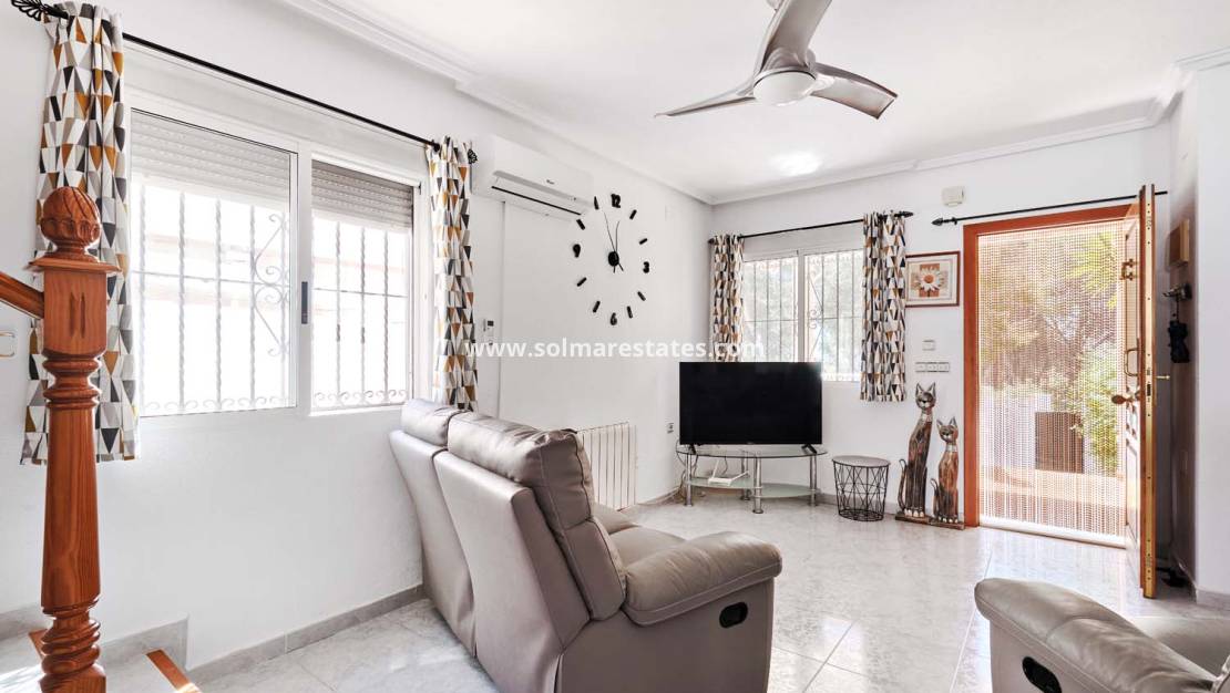 Sällsynt möjlighet att köpa en parhusvilla med 2/3 sovrum och privat pool, perfekt belägen i hjärtat av byn Pinar de Campoverde. Bara några steg från ett brett utbud av barer, restauranger, butiker, ett hälsocenter och apotek, drar denna fastighet också nytta av att vara bara 10 km från de blåflaggade stränderna Torre de la Horadada och Mil Palmeras.